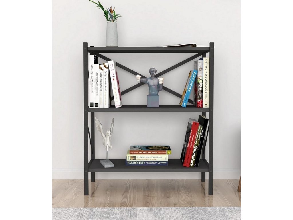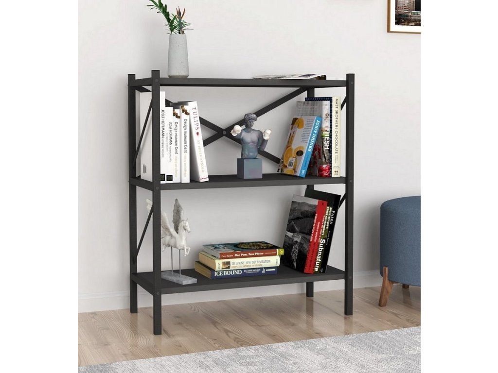 Regál se třemi policemi je z kovového rámu v matné černé barvě a police jsou vyrobeny z kvalitní LTD desky. Barevné provedení polic je antracit. Dodáváme v demontovaném stavu.Doplňkové parametry
