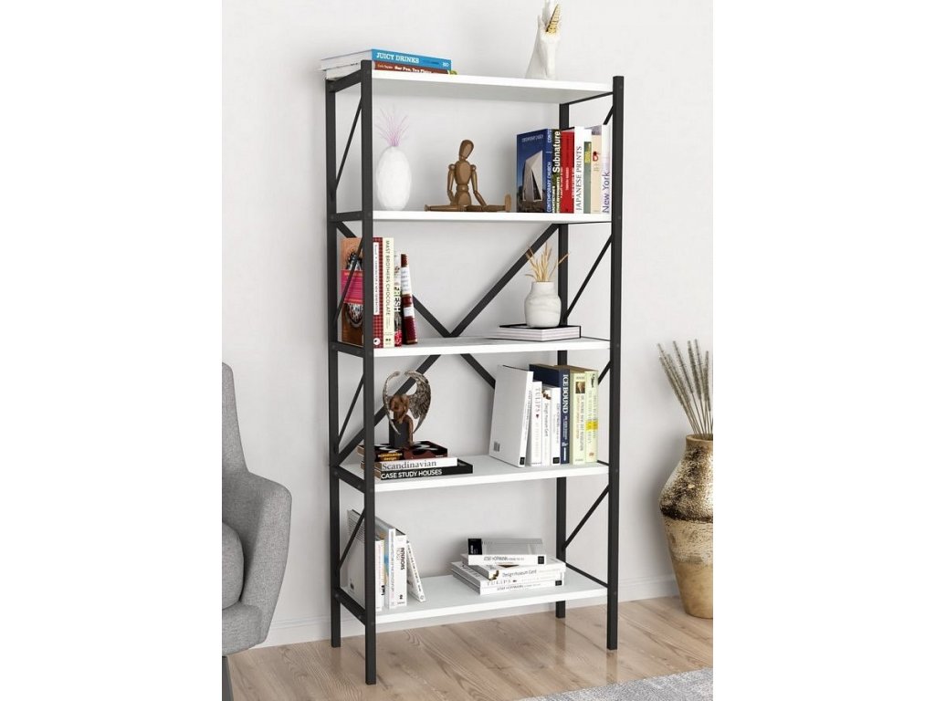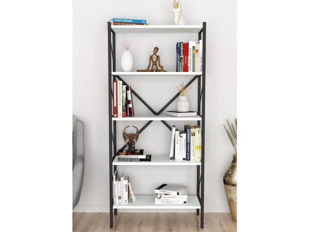 Regál s pěti policemi je z kovového rámu v matné černé barvě a police jsou vyrobeny z kvalitní LTD desky. Barevné provedení polic je bílá. Dodáváme v demontovaném stavu.Doplňkové parametry