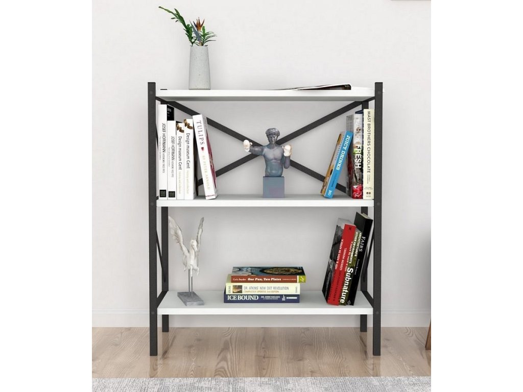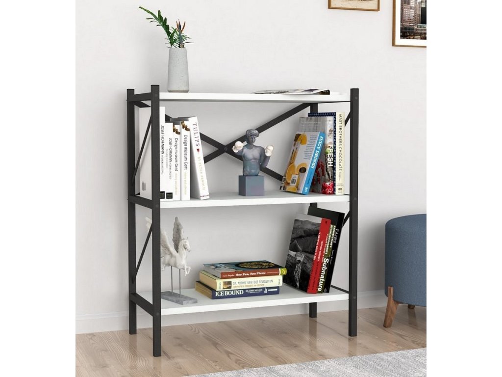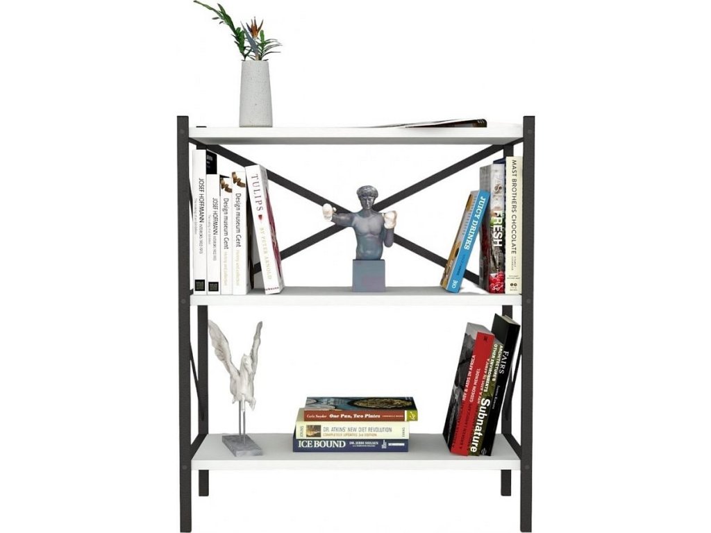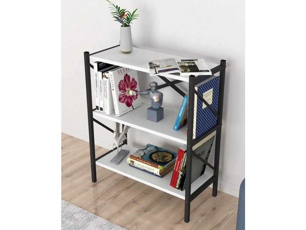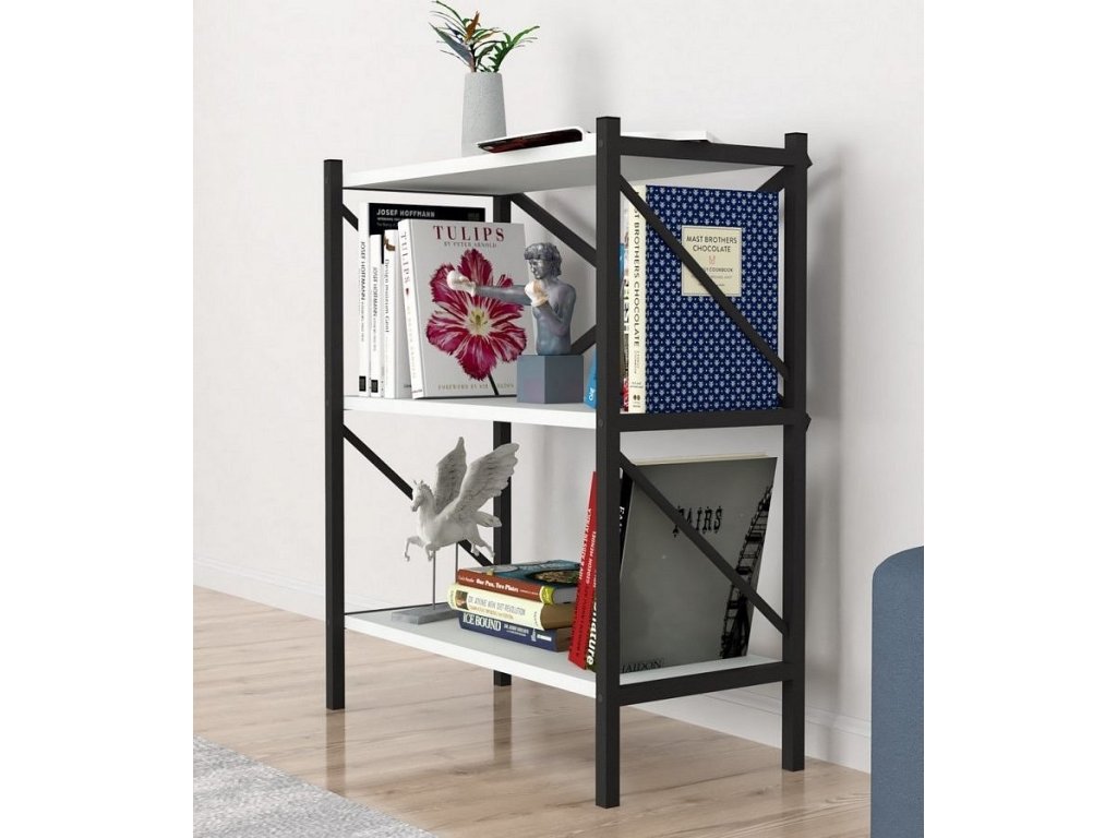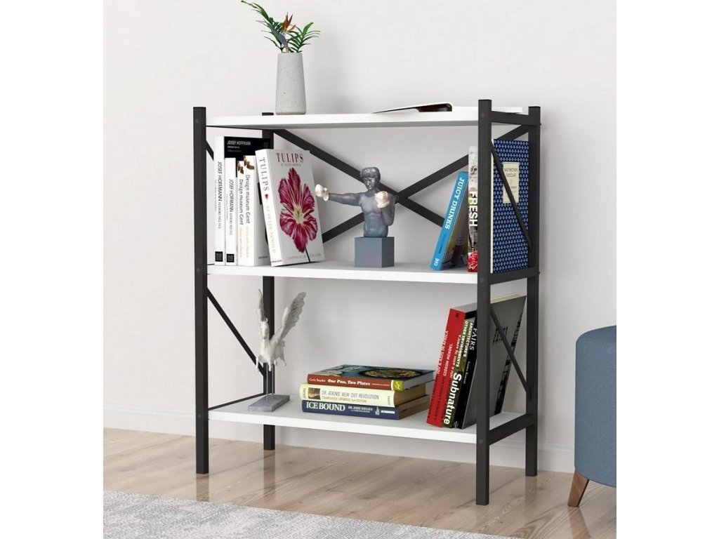 Regál se třemi policemi je z kovového rámu v matné černé barvě a police jsou vyrobeny z kvalitní LTD desky. Barevné provedení polic je bílá. Dodáváme v demontovaném stavu.Doplňkové parametry