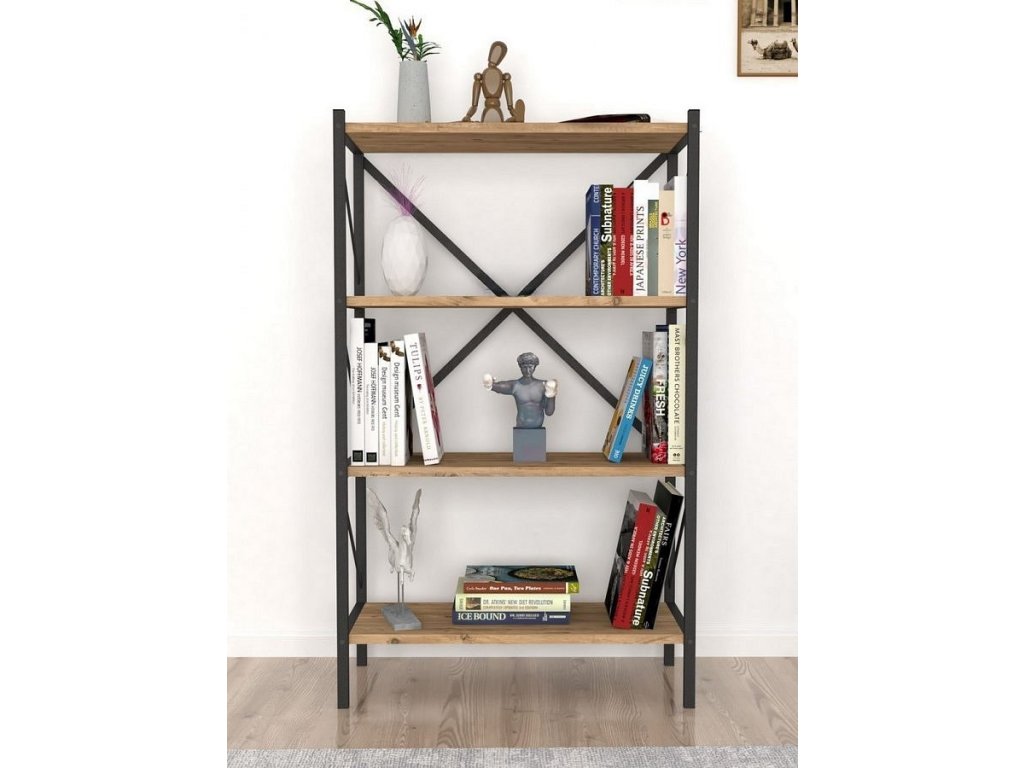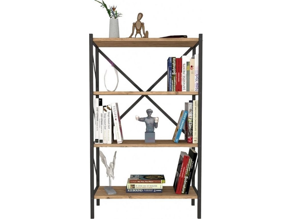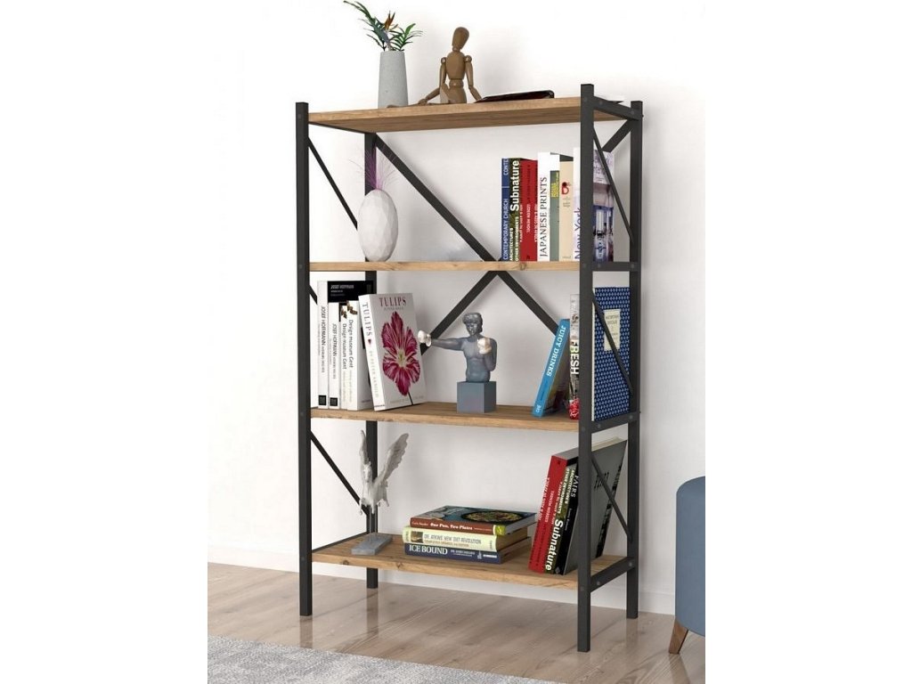 Regál se čtyřmi policemi je z kovového rámu v matné černé barvě a police jsou vyrobeny z kvalitní LTD desky v barvě borovice. Dodáváme v demontovaném stavu.Doplňkové parametry