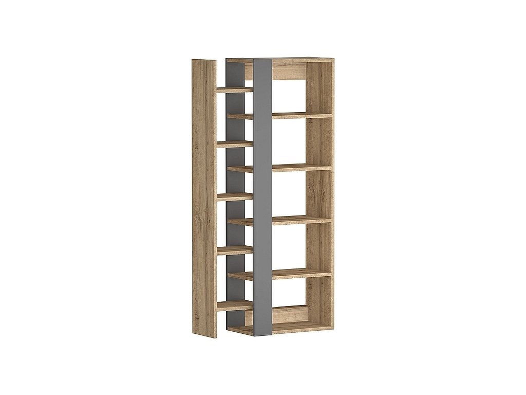 Regál v moderním stylu v barevné kombinaci dub wotan/šedá antracit. Své uplatnění najde nejen jako úložný prostor, ale také jako výjimečný prvek bydlení. Regál je vyroben z kvalitní LTD desky v barvě dub wotan/šedá antracit. Dodáváme v demontovaném stavu.Doplňkové parametry