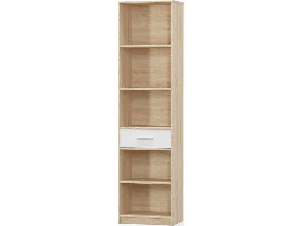 Regál s jednou zásuvkou ze sektorového nábytku v moderním provedení. Regál je vyroben z kvalitní LTD desky v barevné kombinaci dub sonoma / bílá mat. Nabídka komponentů této sektorové řady umožňuje sestavit si nábytek do obývacího, dětského nebo studentského pokoje dle vlastních představ. Dodáváme v demontovaném stavu.Doplňkové parametry