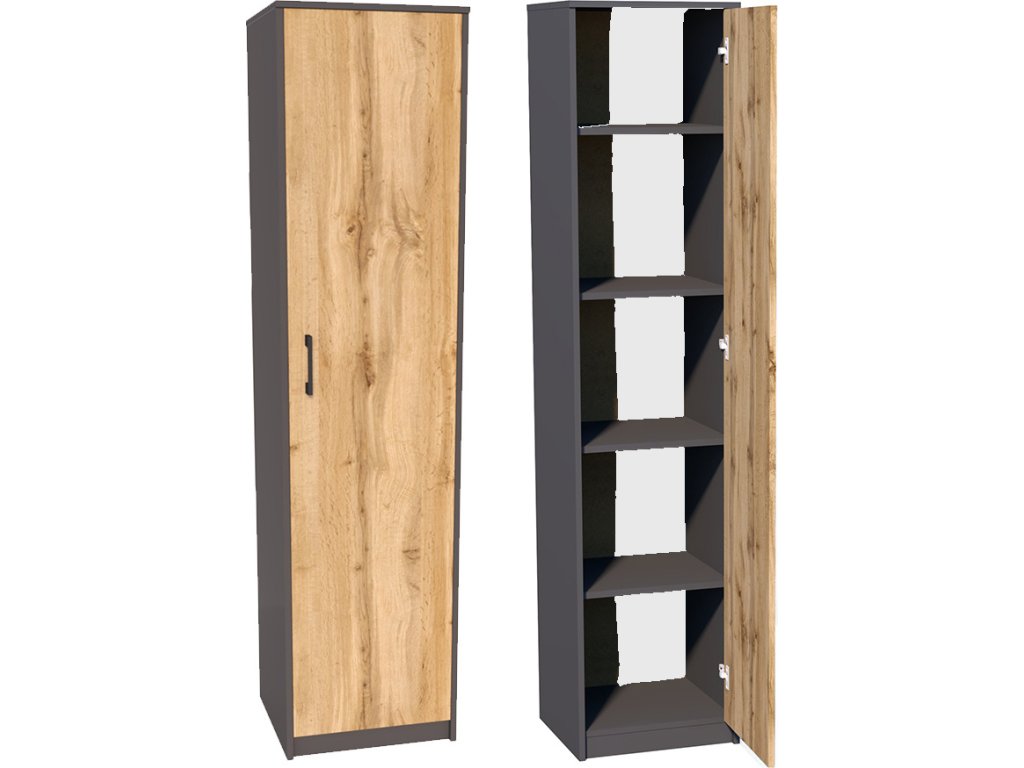 Regálová skříň VERNIO grafit/dub wotan