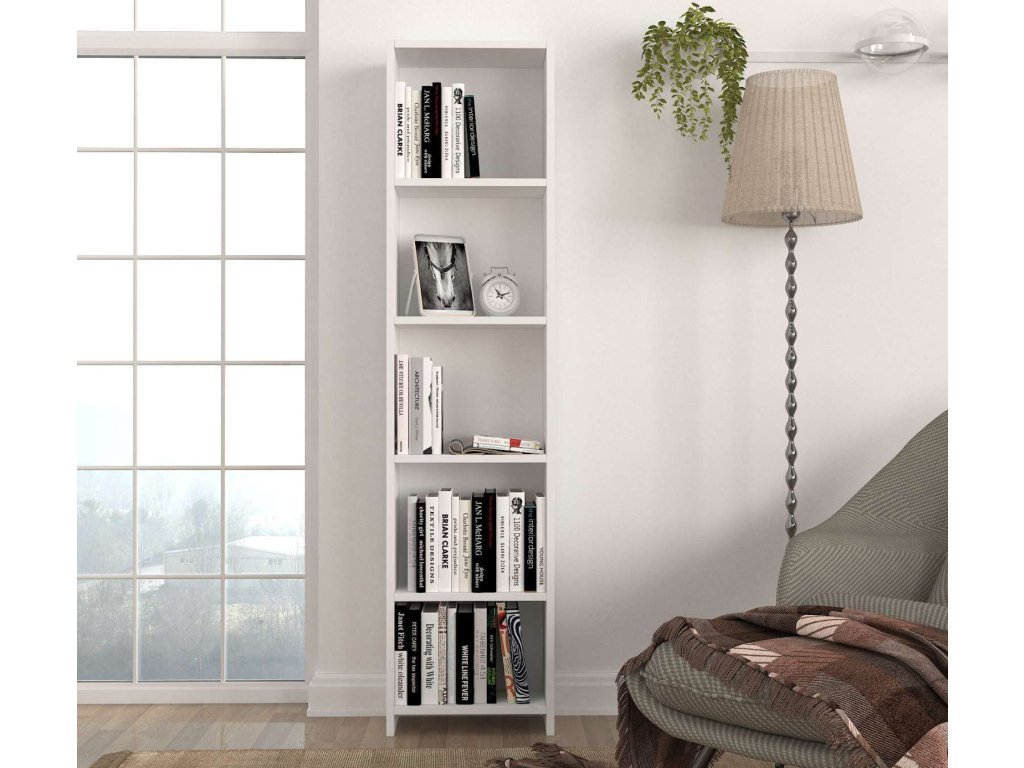 Regál vyniká svým štíhlým a elegantním designem, který je ideální pro menší prostory. Čtyři pevné police poskytují dostatek úložného prostoru pro knihy, dekorace či kancelářské potřeby. Robustní LTD materiál o tloušťce 18 mm zajišťuje dlouhou životnost a stabilitu tohoto regálu.