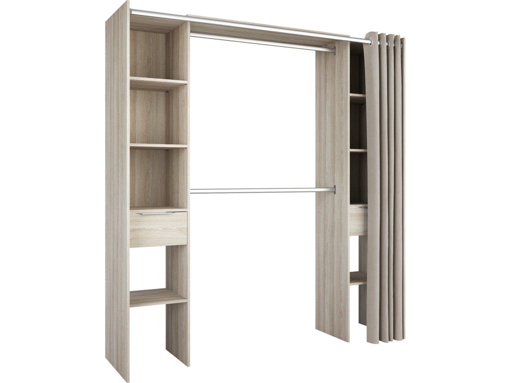 barevné provedení dub Shannon, béžový závěs 2 zásuvky s kovovými pojezdy, 6 polic, 2 šatní tyče organizér lze sestavit ve variabilní šířce od 115 do 190 cm maximální nosnosti jsou uvedeny v návodu k montáži