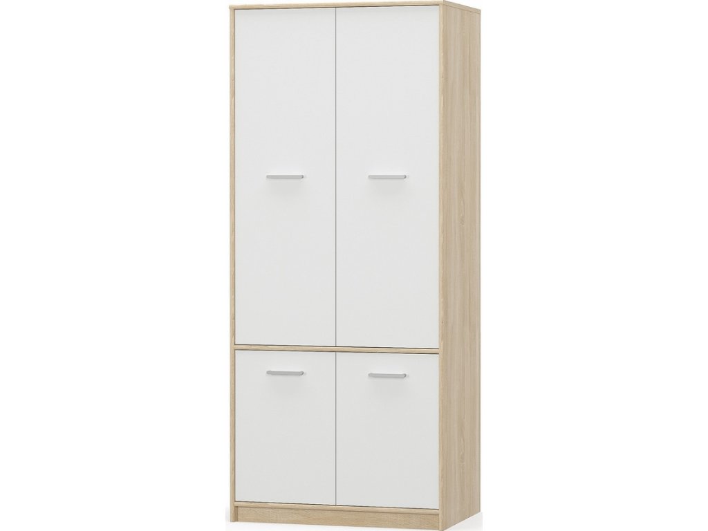 Šatní skříň čtyřdveřová ze sektorového nábytku v moderním provedení. Skříň je vyrobena z kvalitní LTD desky v barevné kombinaci dub sonoma / bílá mat. Nabídka komponentů této sektorové řady umožňuje sestavit si nábytek do obývacího, dětského nebo studentského pokoje dle vlastních představ. Dodáváme v demontovaném stavu.Doplňkové parametry