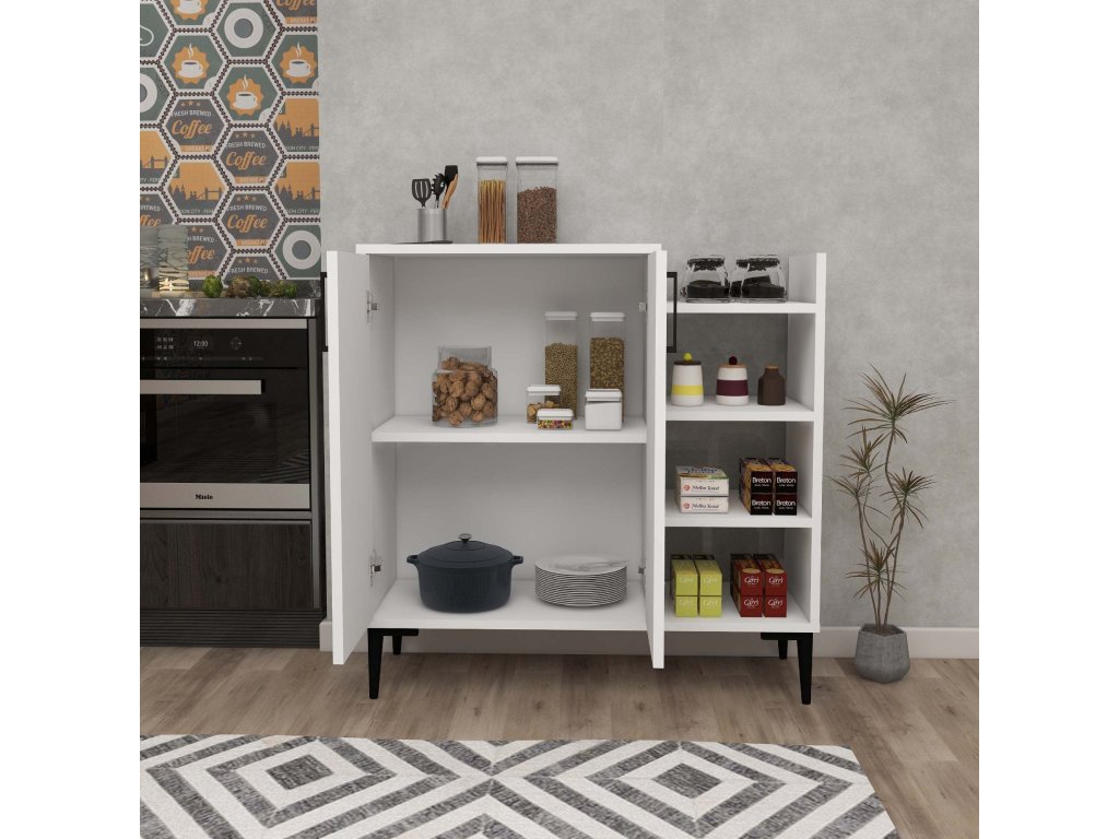 Skříňka do kuchyně nabízí moderní design a praktické využití. Díky dvěma plným dvířkům a regálku poskytuje dostatek úložného prostoru pro nádobí, potraviny nebo kuchyňské doplňky. Její víceúčelový vzhled zajišťuje univerzální využití, které se hodí do každé kuchyně.