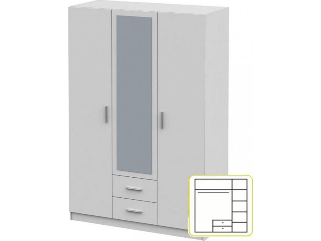 Skriňa INVITA Typ 2 Materiál: DTD laminovaná Prevedenie: biela Rozmery (ŠxHxV): 134,2x60x200 cm Tloušťka materiálu: 16 mm Šířka dvířek: 43,8cm Trojdverová Zrkadlo Dva šuplíky Vešiaková časť Policová časť Kvalitný slovenský výrobok Dodávané v demonte