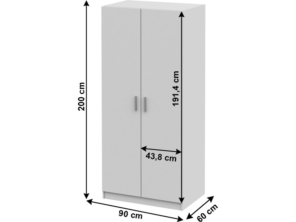 Skříň INVITA Typ 4 Materiál: DTD laminovaná Provedení: bílá Rozměry (ŠxHxV): 90x60x200 cm Šířka dvířek: 43,8 cm Výška dvířek: 191,4 cm Tloušťka materiálu: 16 mm Dvoudveřová Věšáková Kvalitní slovenský výrobek Dodávané v demontu