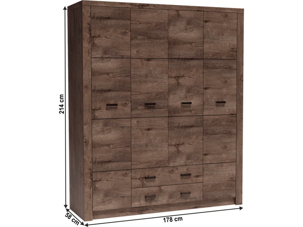 Skříň INFINITY 1-18 Materiál / provedení: DTD laminovaná / ABS hrany, jasan tmavý Rozměry (ŠxHxV): 178x58x214 cm Tloušťka materiálu: 48 mm Tloušťka materiálu zbývající části: 16 mm Možnost dokoupení ostatních částí sestavy Dodávané v demontu