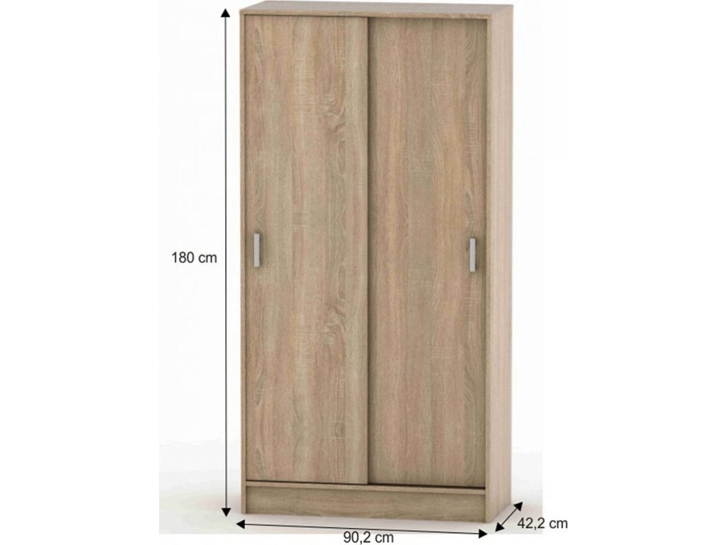 Skříň BETTY 4 dvoudveřová s posuvnými dveřmi. Materiál: DTD laminovaná Barva: dub sonoma Rozměry (ŠxHxV): 90,2x42,2x180 cm. Hloubka lamina: 1,6 cm Slovenský výrobek. Dodávané v demontu.
