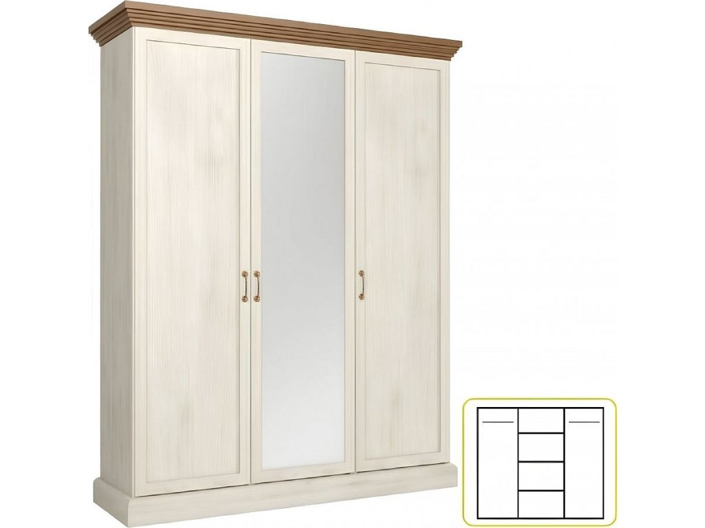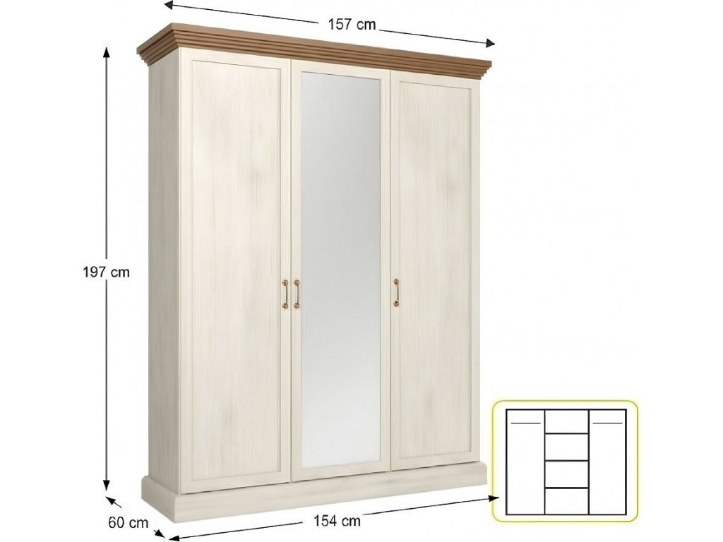 Věšáková a Poličkové skříň S3D se zrcadlem z elegantního sektorového systému Royal v provensálském stylu. Vhodná na zařízení obývacích pokojů či ložnic. Materiál: korpus DTD laminovaná + ozdobné lišty, kovové úchytky Barevné provedení: sosna skandinávská / dub divoký Rozměry ŠxHxV: 154x60x197 cm Tloušťka materiálu korpus: 15 mm Tloušťka materiálu vrchní desky: 22 mm Dodávané v demontu.