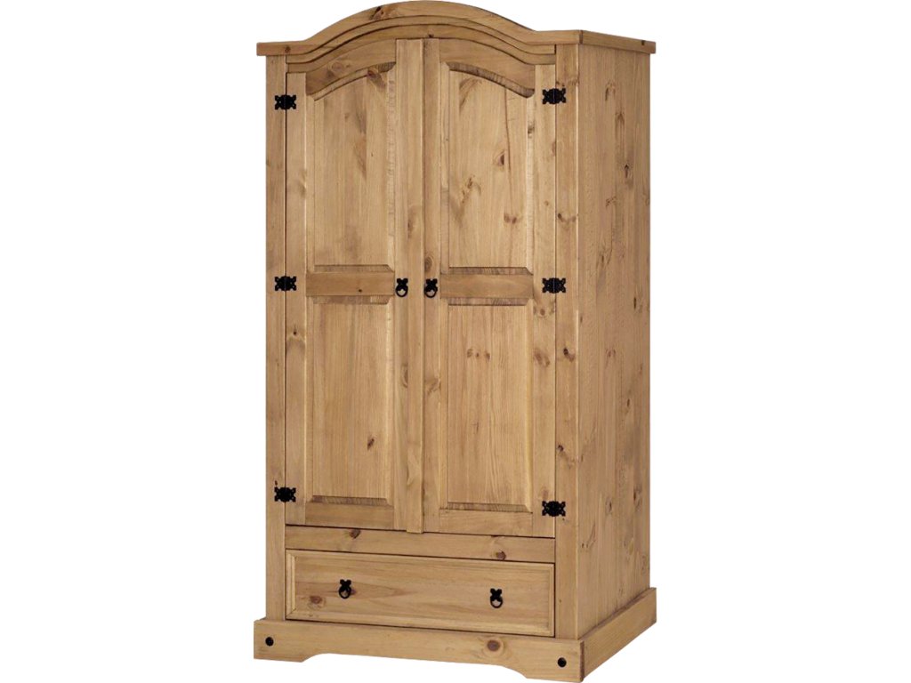 materiál masiv borovice voskovaná v medovém odstínu šatní skříň s šatní tyčí a policí na klobouky 1 široká zásuvka, kovové ozdobné úchytky součást sestavy Corona 3