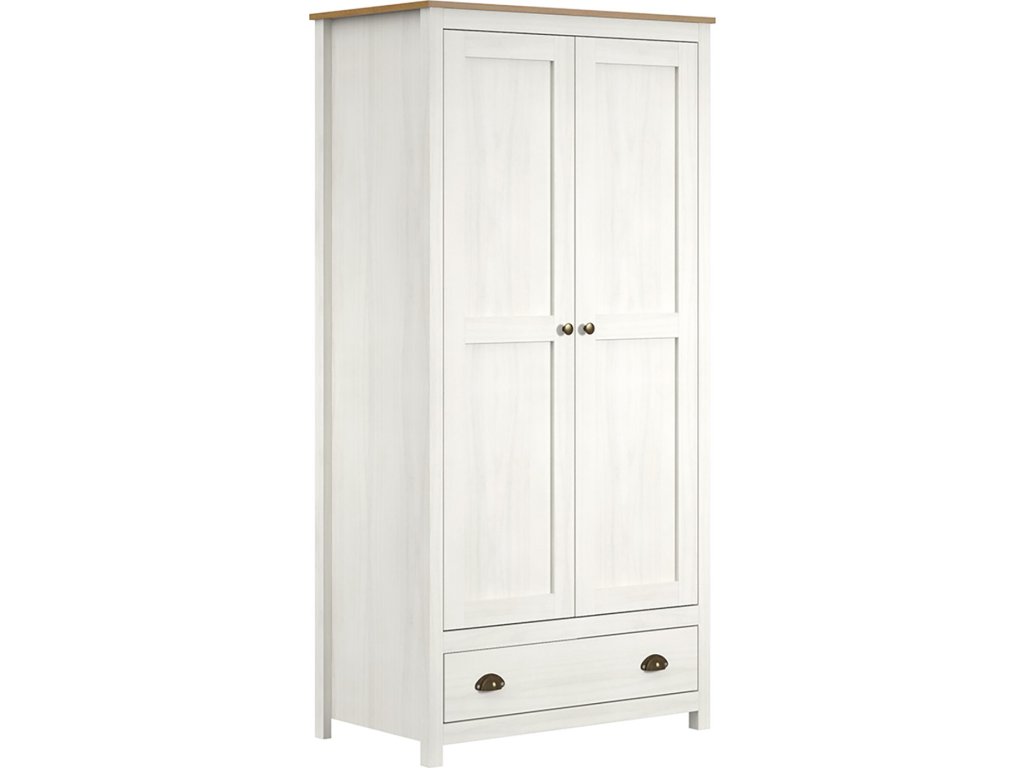 materiál masiv borovice, barevné provedení bílý / hnědý lak jedna zásuvka s kovovými úchytkami a pojezdy jedna police a kovová šatní tyč vhodný doplněk nástavec TOPAZIO 206951