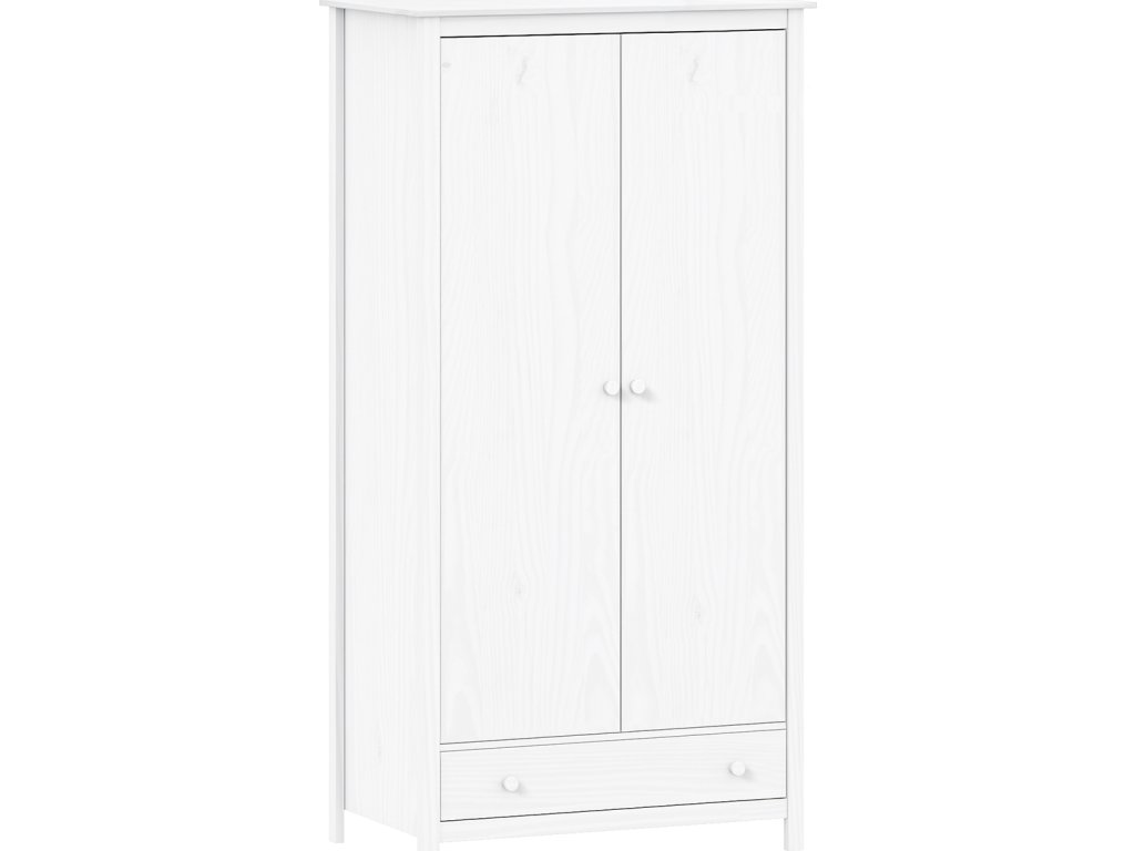 materiál masiv borovice, barevné provedení bílý lak šatní skříň vybavená šatní tyčí a policí ve spodní části zásuvka s kovovými pojezdy doporučený nástavec 8188B