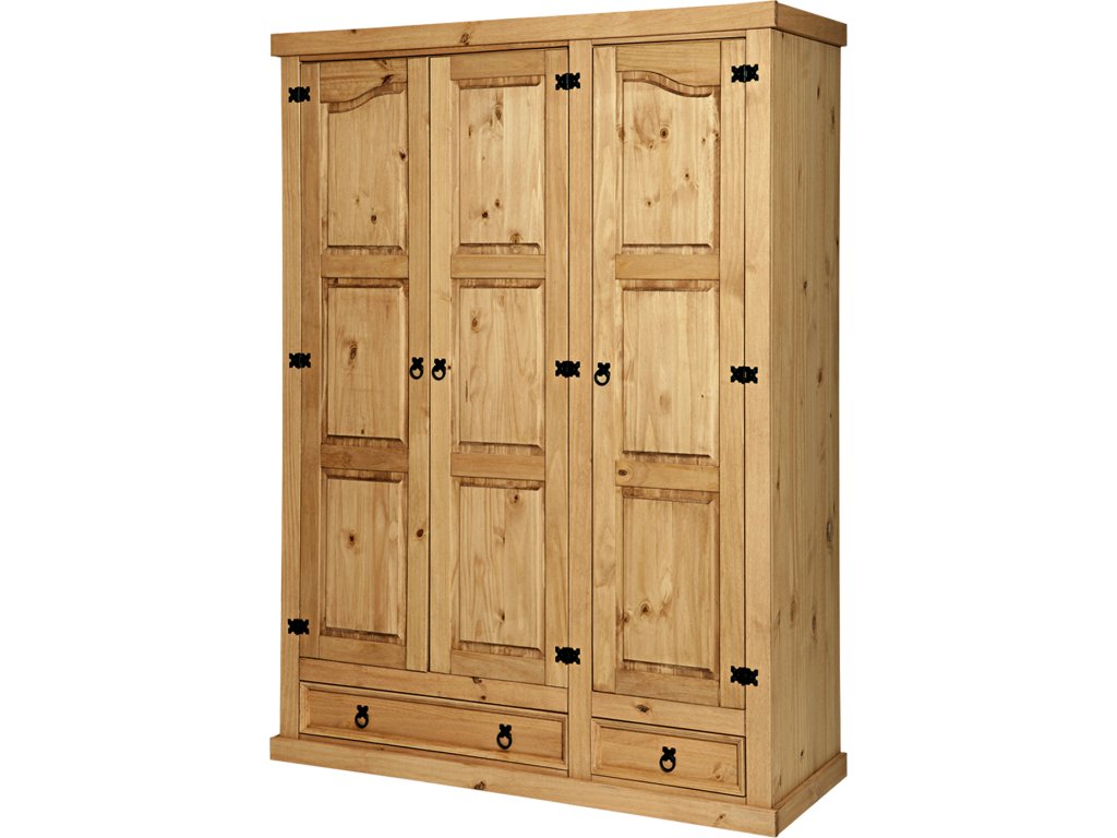 materiál masiv borovice voskovaná v medovém odstínu prostor dělený v poměru 2:1 širší část šatní tyč a police, užší část 3 police ve spodní části 1 velká a 1 malá zásuvka, kovové ozdobné úchytky doporučený nástavec CORONA 16952 součást sestavy Corona
