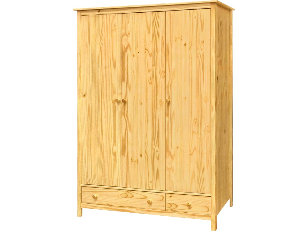 materiál masiv borovice, lakované provedení prostor dělený v poměru 2:1 širší část šatní tyč a police, užší část 3 police ve spodní části 2 zásuvky s kovovými pojezdy
