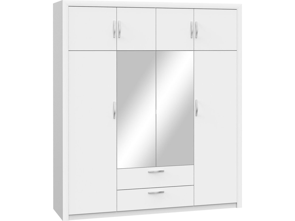 barevné provedení perleťově bílá prostor dělený v poměru 1:2:1, nástavec rozdělený na 2 stejné části je součástí skříně v každé užší části 3 police z toho 2 variabilní, rozměr police (š/h) 55 × 49 cm širší část zrcadlové dveře, šatní tyč, v dolní části 2 zásuvky s kovovými pojezdy rozměr zásuvky (š/h/v) 79 × 37 × 15 cm záda dutinkový plast