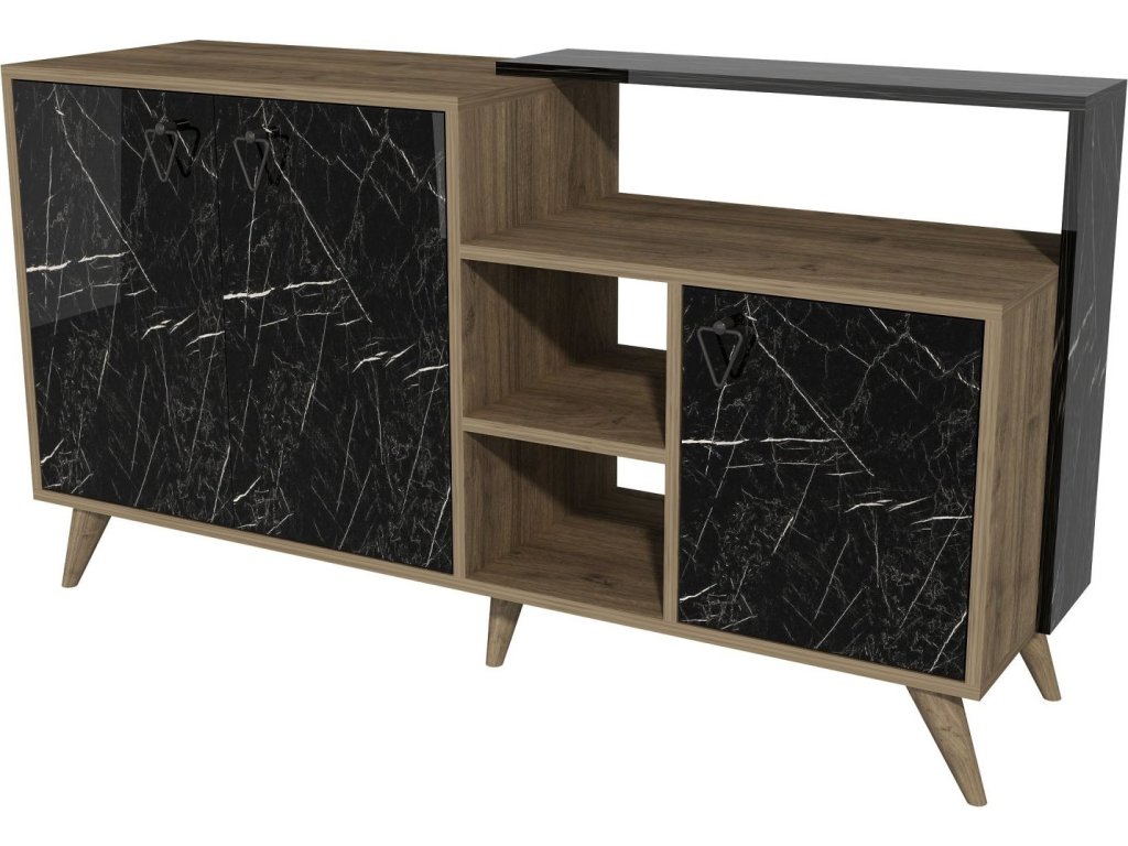 Komoda kombinuje moderní design s funkčností, díky čemuž je ideálním řešením pro uspořádání vašeho obývacího pokoje. Nabízí praktické úložné prostory díky třem plným dvířkům a regálku, což zajišťuje dostatek místa pro uspořádání všech vašich věcí. Kvalitní zpracování a estetický vzhled z ní činí stylový doplněk každého interiéru.