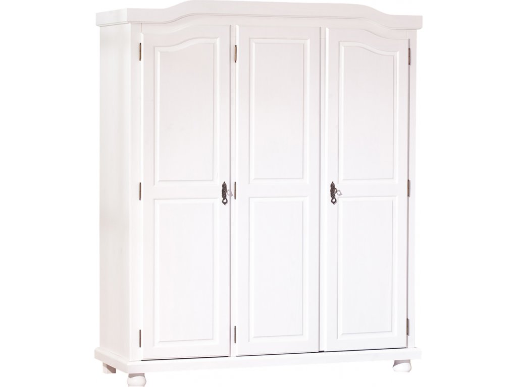 materiál masiv borovice, barevné provedení bílý lak prostor dělený v poměru 2:1 širší část šatní tyč a police, užší část 3 police