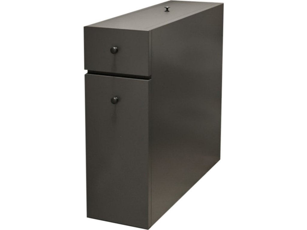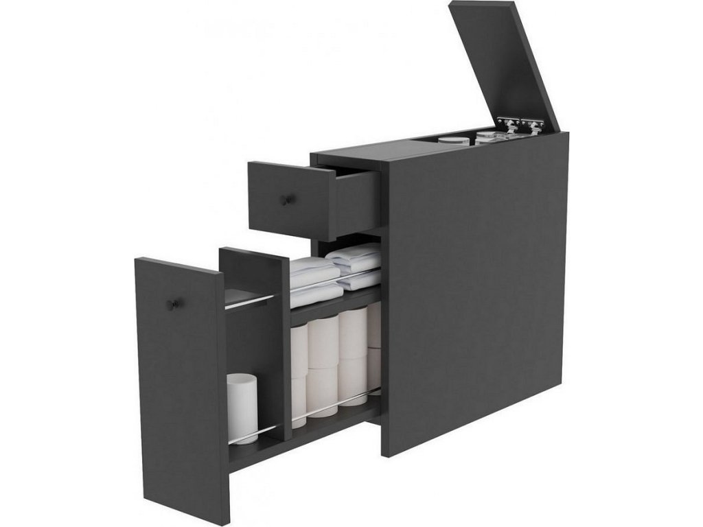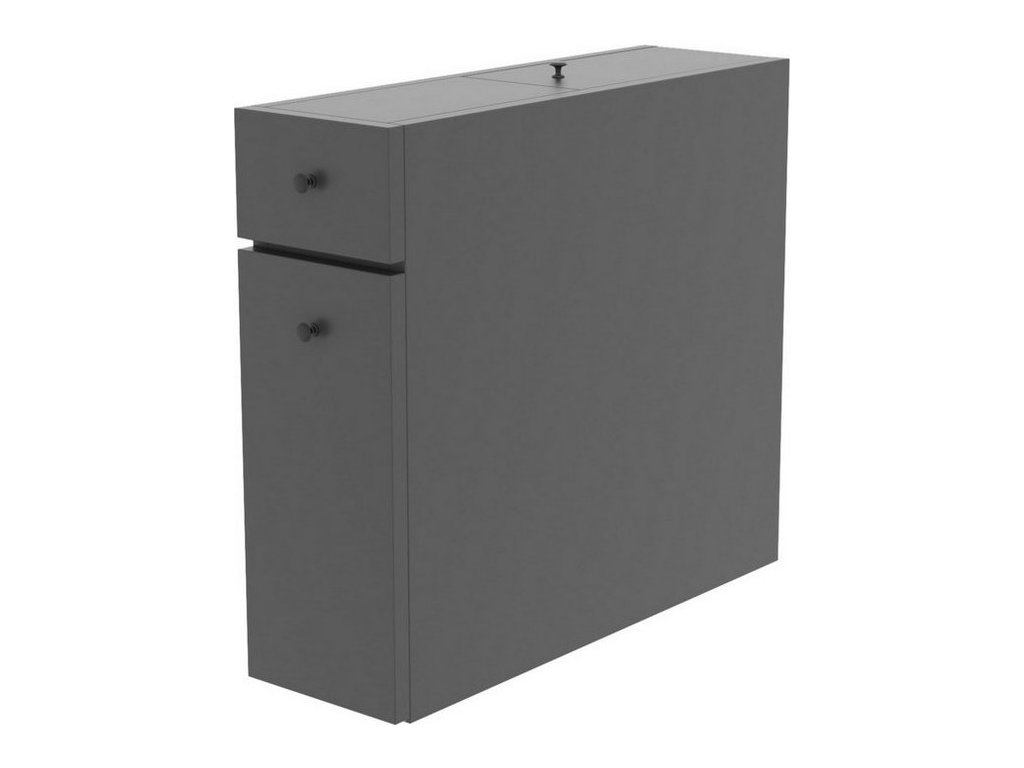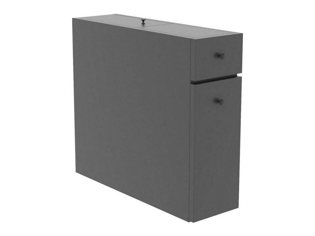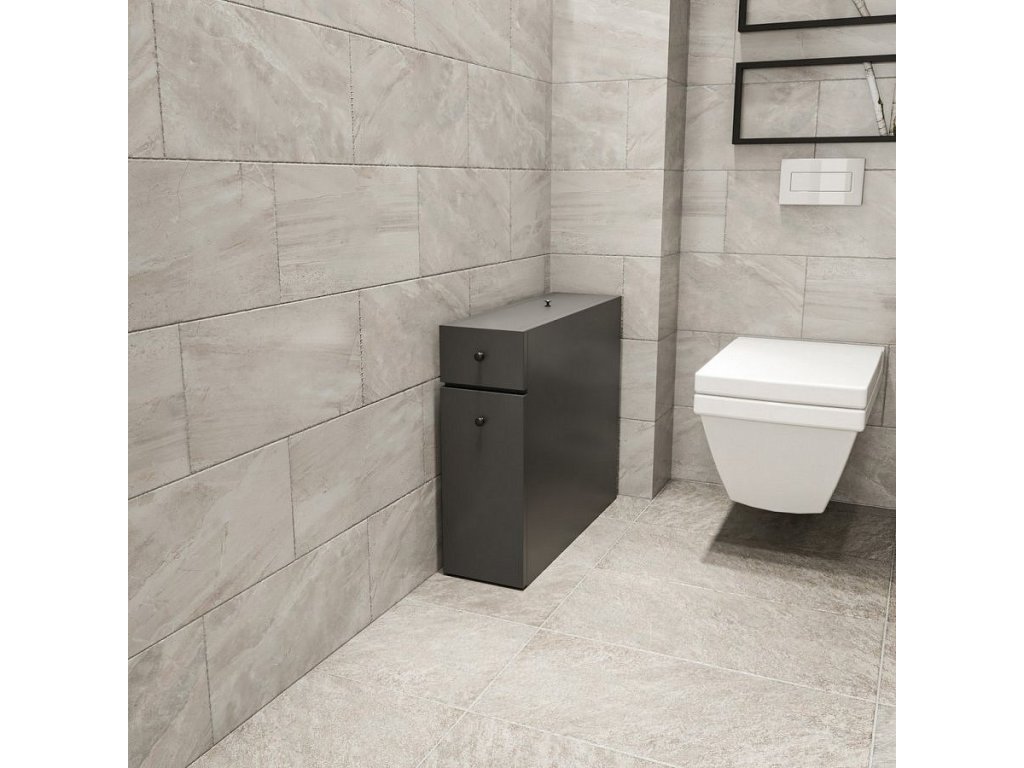 Praktická, moderní a elegantní koupelnová skříňka, navržená tak, aby šetřila místo a zároveň poskytovala dostatek úložného prostoru. Materiál je Melamin, VT laminát (18 mm) a další kvalitní materiály. Barevné provedení je antracit. Tato skříňka nabízí chytré a efektivní řešení pro menší koupelny. Jeho úzký design umožňuje maximální využití prostoru bez kompromisů na úložnou kapacitu. 1 dvířka a 2 zásuvky poskytují diskrétní úložné prostory pro ručníky, kosmetiku a další nezbytnosti, zatímco 2 police slouží k pohodlnému uskladnění každodenních potřeb. Dodáváme v demontovaném stavu.