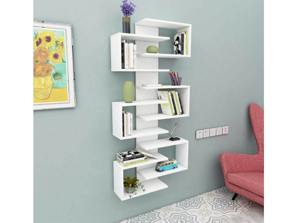 Závěsný regál je dokonalým spojením moderního designu a funkčnosti. Díky svému obdélníkovému tvaru a deseti prostorným policím nabízí dostatek místa pro vaše knihy, dekorace nebo jiné doplňky. Elegantní provedení a možnost připevnění na zeď zajišťují bezpečnost a stylový vzhled vašeho interiéru.