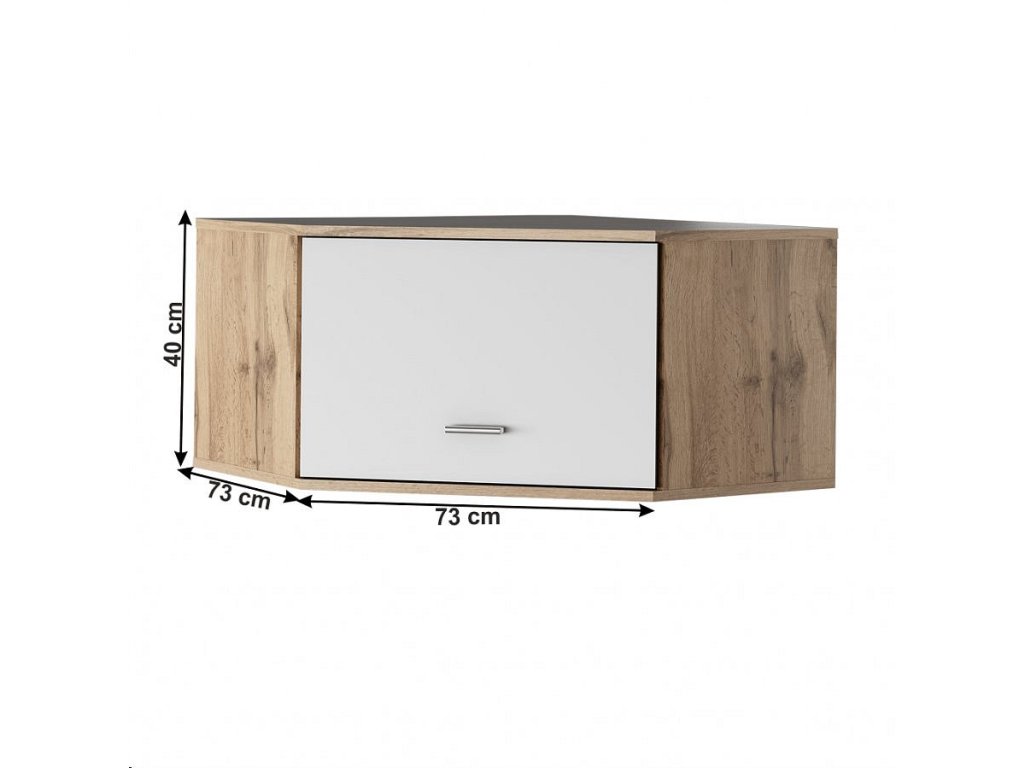 Materiál: DTD laminovaná Barva: dub wotan/bílá Rozměry (ŠxHxV): 73x73x40 cm rohový S policí S úchytkami Kvalitní slovenský výrobek Dodávané v demontu