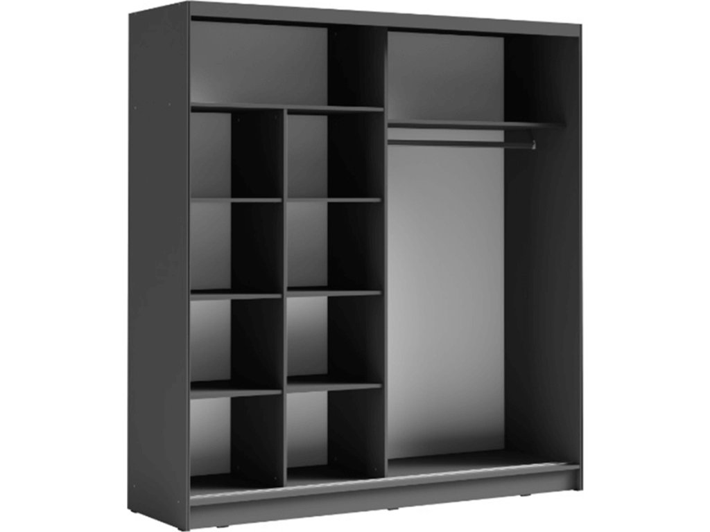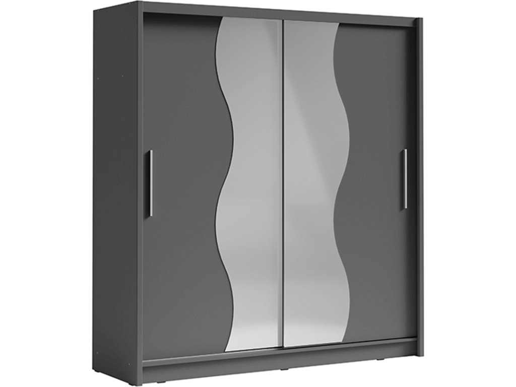 Skriňa so zrkadlom, s posúvacími dverami BIRGAMO TYP 1 Materiál: DTD laminovaná/zrkadlo Farba: tmavosivá grafit Rozmery (ŠxHxV): 205x63x215 cm Dodávané v demonte.