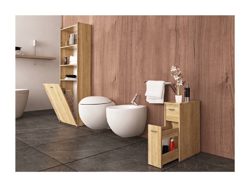 Koupelnová skříňka NATALI TYP 7 Materiál: DTD laminovaná Barevné provedení: dub sonoma Rozměry (ŠxHxV): 20x45x61 cm Tloušťka materiálu: 16 mm Dodávána v demontu.