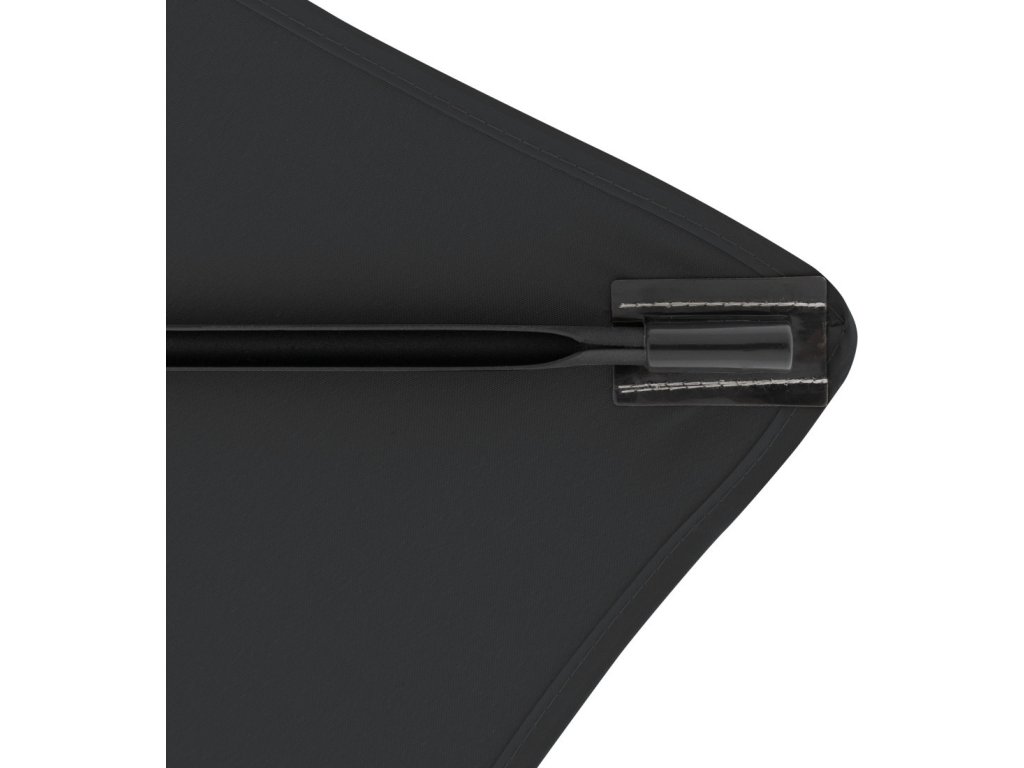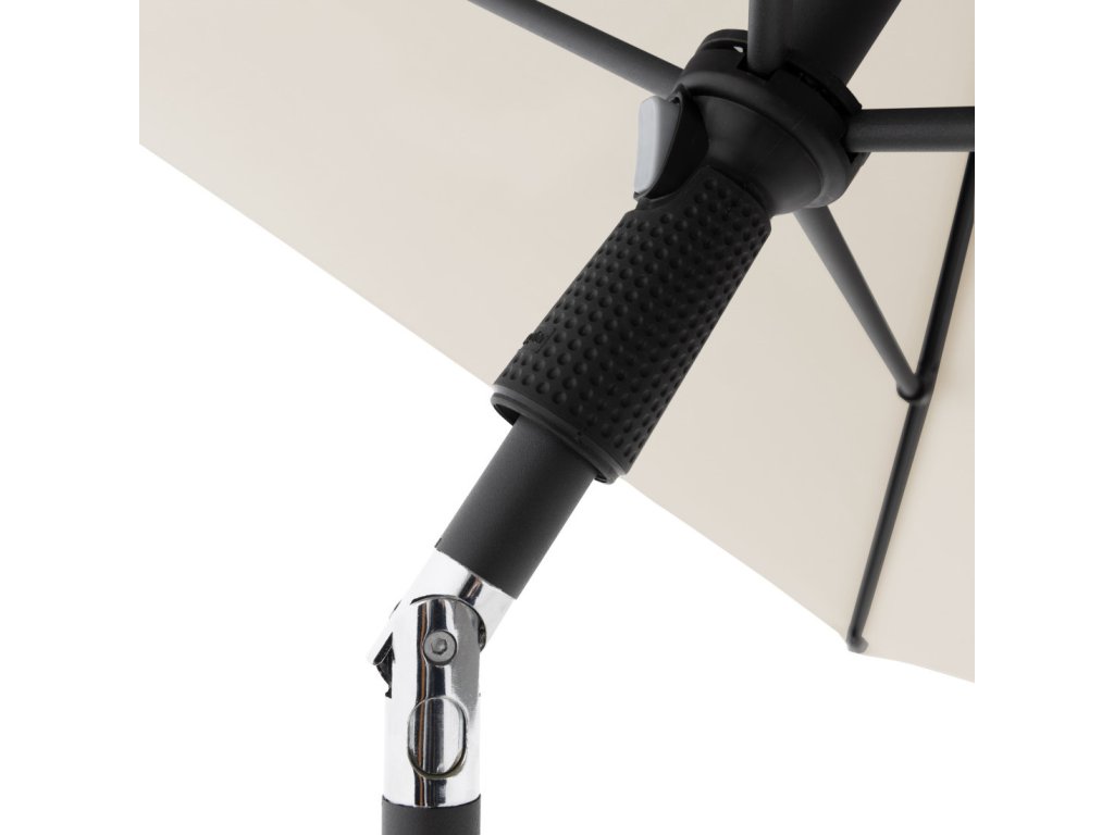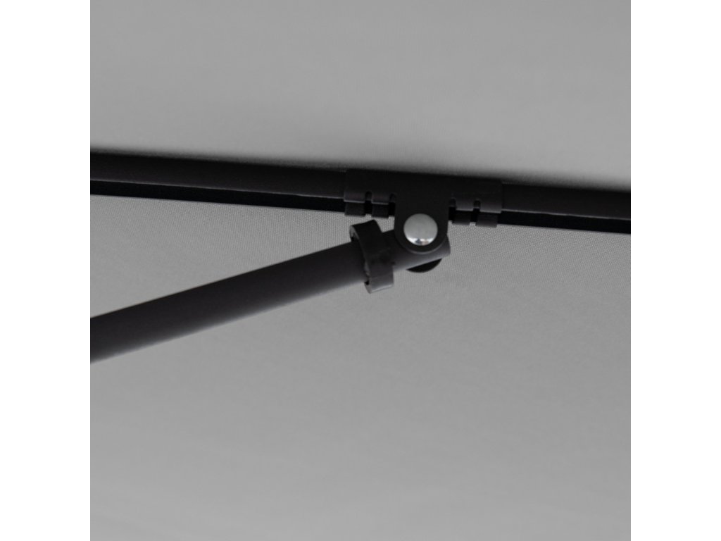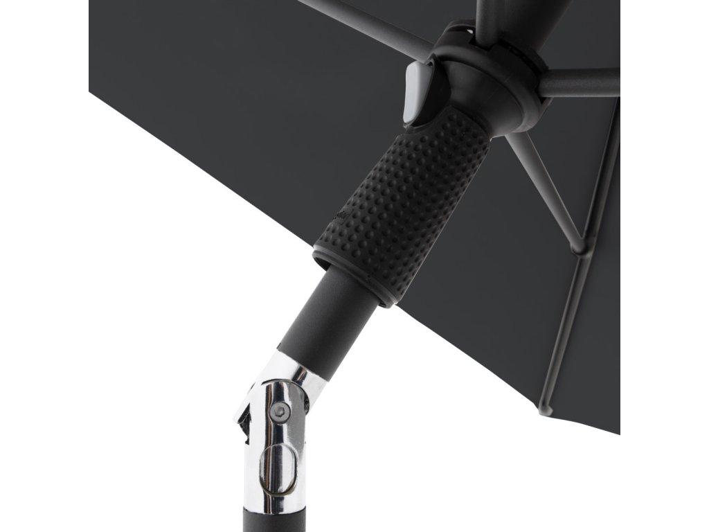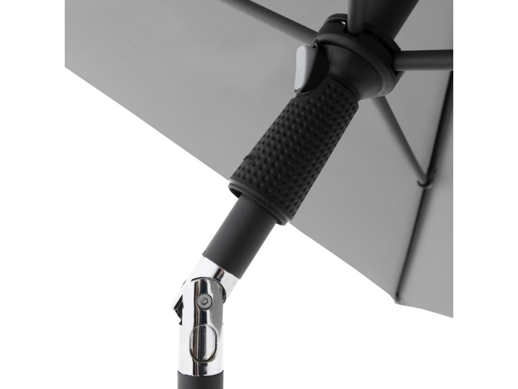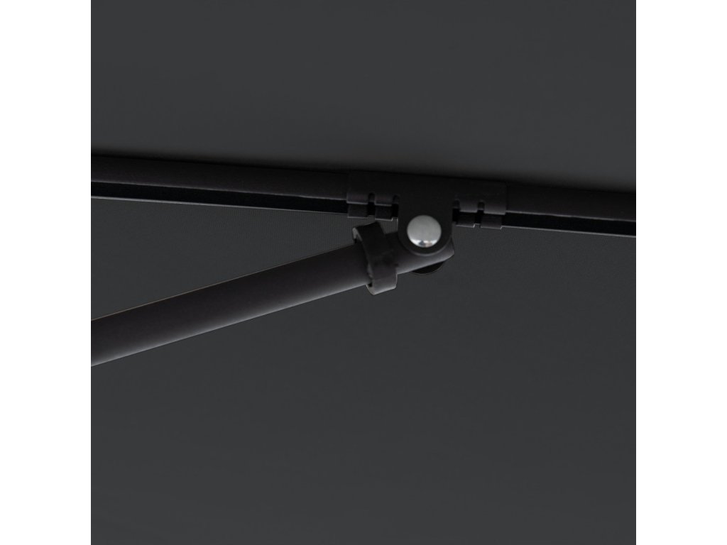 Slunečník má stabilní ocelovou konstrukci v antracitové barvě s ručním otevíráním a naklápěcím kloubem se 3 polohami naklopení. Potah je vyroben ze 100% PET recyklované polyesterové tkaniny a má dobrou UV ochranu 50+. Touto novou kolekcí ""GREEN EDITION"" následujeme trend udržitelnosti materiálů a výrobků.