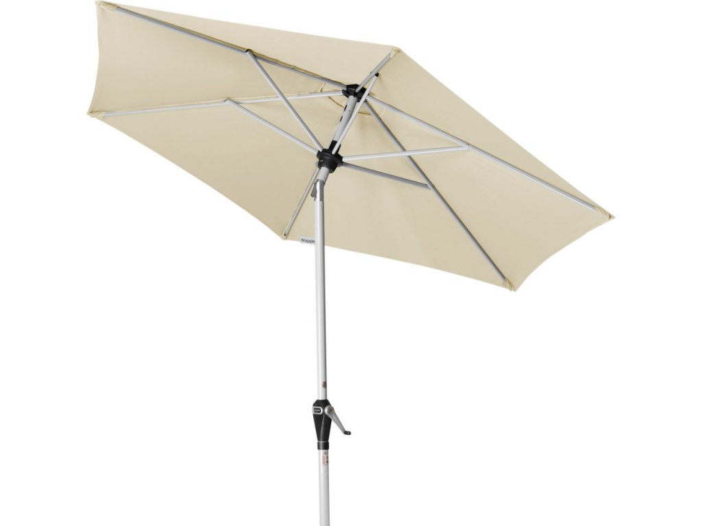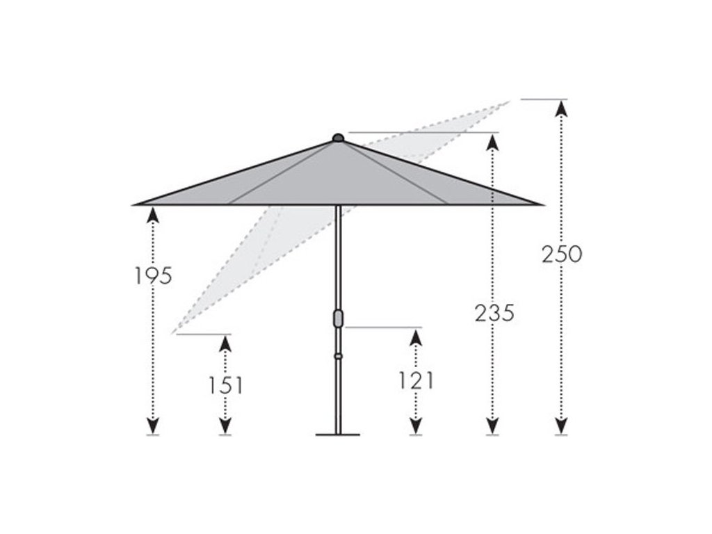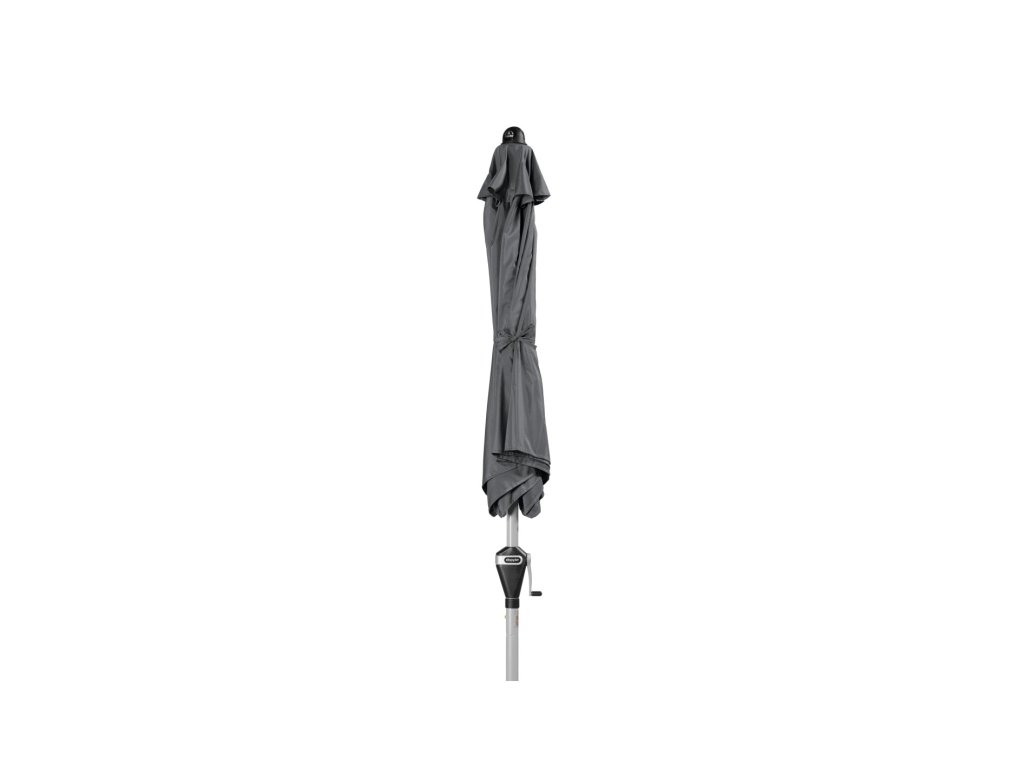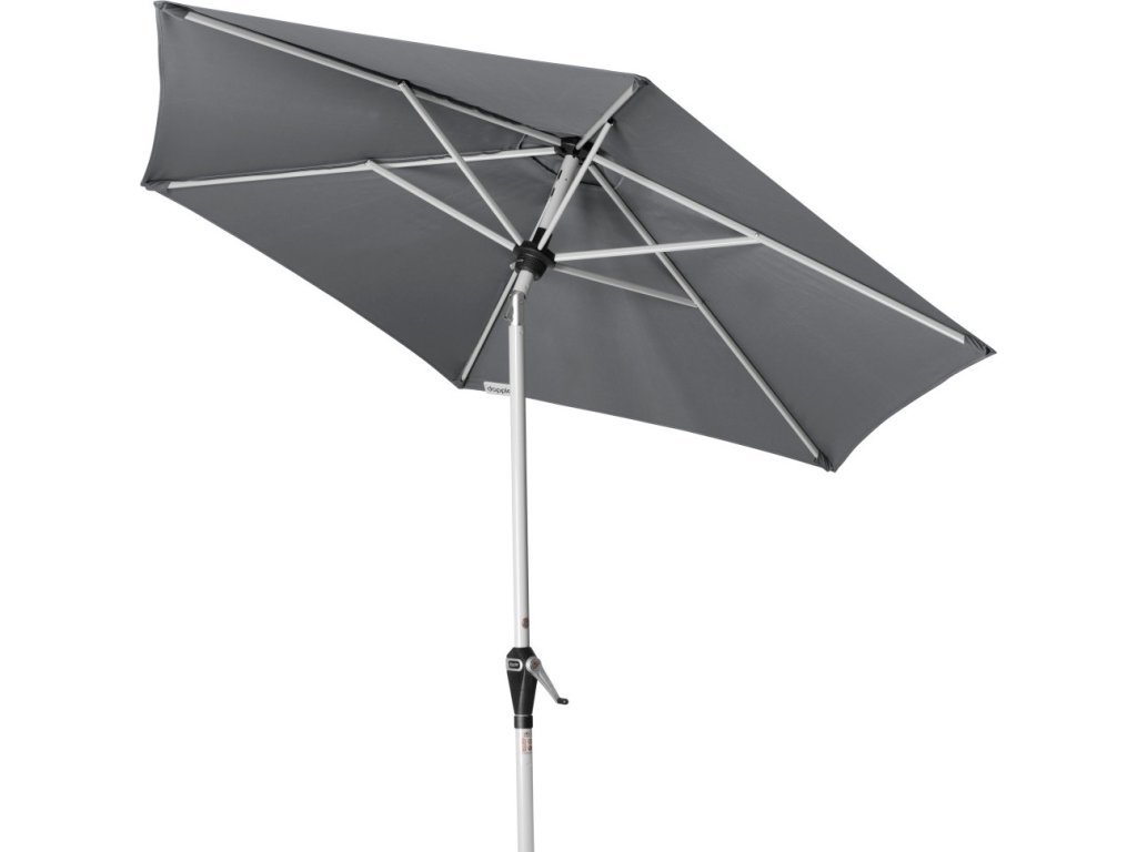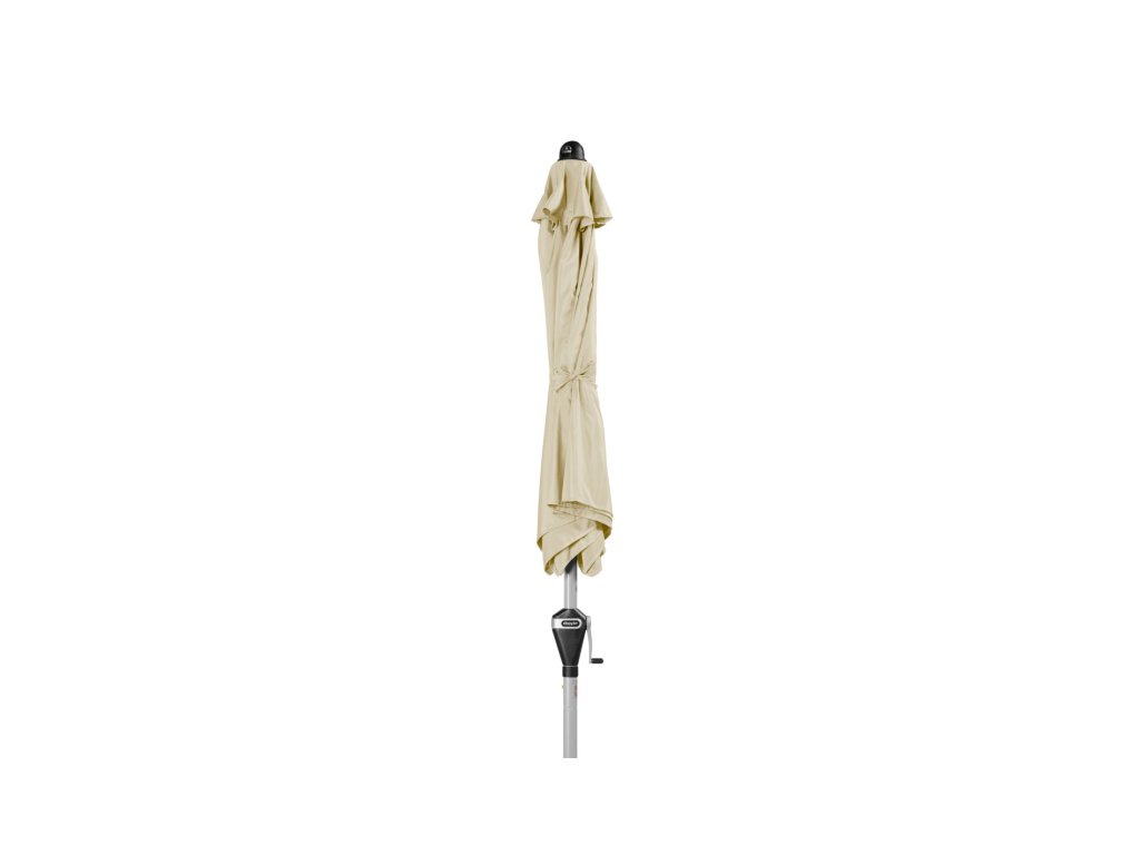 Slunečník má stabilní hliníkovou konstrukci, která je vybavená klikou pro snadné otevírání a zavírání. Komfortní funkce automatického naklápění umožňuje automatické naklopení střechy pouhým otočením kliky. Slunečník je možné výškově nastavit o 15 cm. Potah slunečníku je vyroben ze 100% polyesterové tkaniny odolné proti povětrnostním vlivům s dobrou světelnou stálostí a dobrou UV ochranou 50+ SPF. Díky vzduchovému ventilu ve střeše se pod slunečníkem nekumuluje horký letní vzduch.