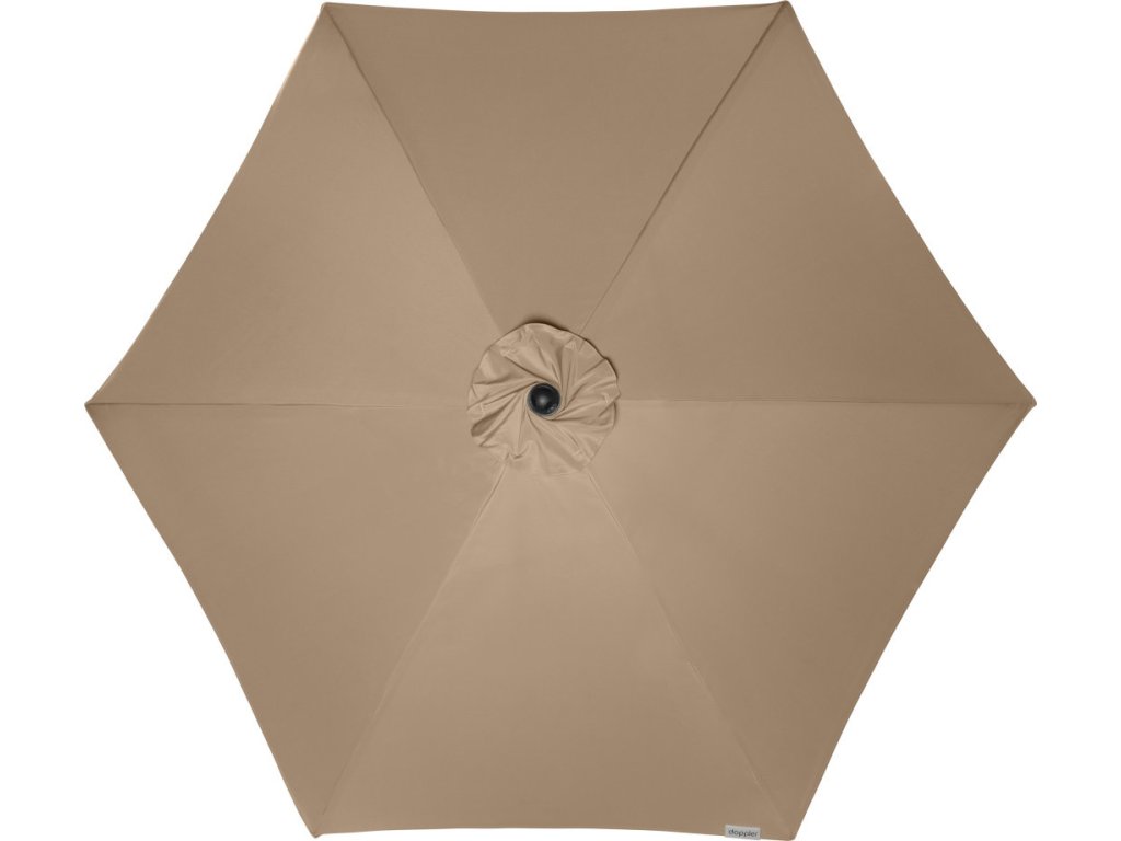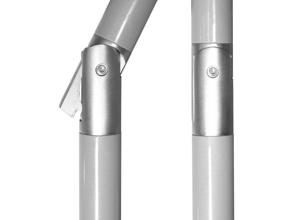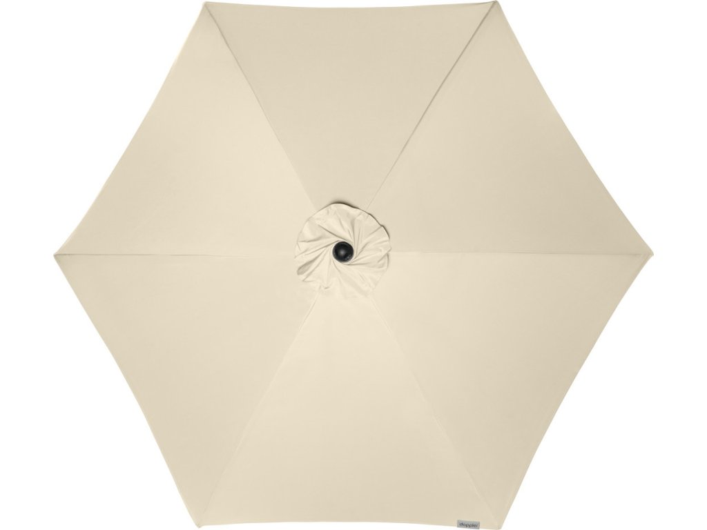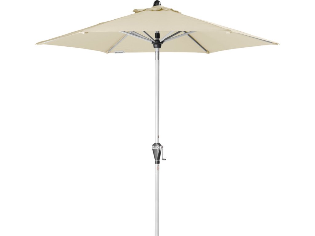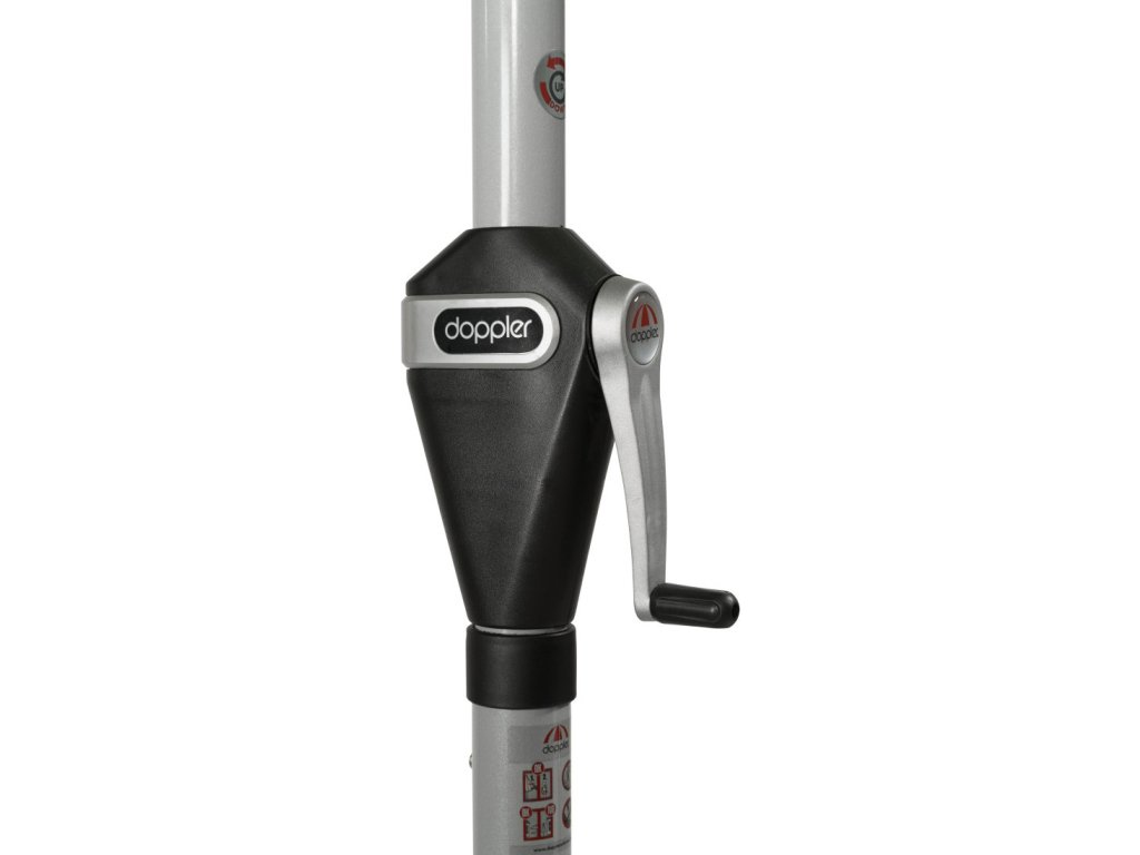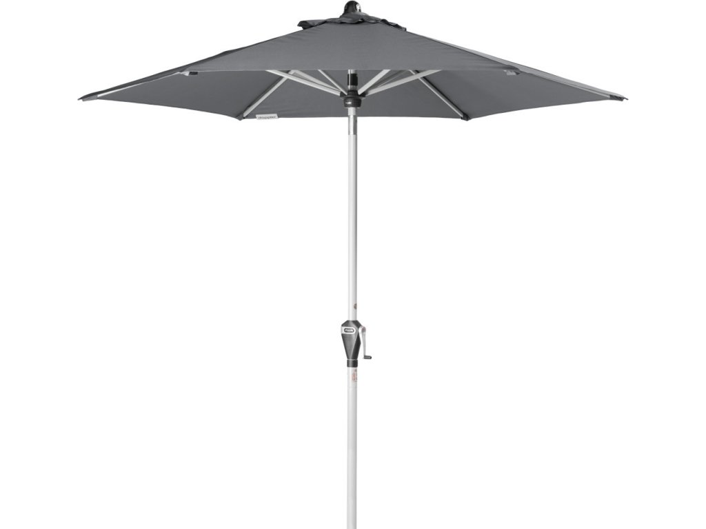 Slunečník má stabilní hliníkovou konstrukci, která je vybavená klikou pro snadné otevírání a zavírání. Komfortní funkce automatického naklápění umožňuje automatické naklopení střechy pouhým otočením kliky. Slunečník je možné výškově nastavit o 15 cm. Potah slunečníku je vyroben ze 100% polyesterové tkaniny odolné proti povětrnostním vlivům s dobrou světelnou stálostí a dobrou UV ochranou 50+ SPF. Díky vzduchovému ventilu ve střeše se pod slunečníkem nekumuluje horký letní vzduch.