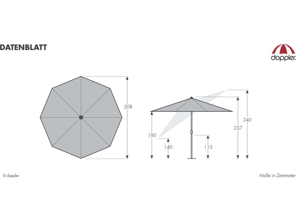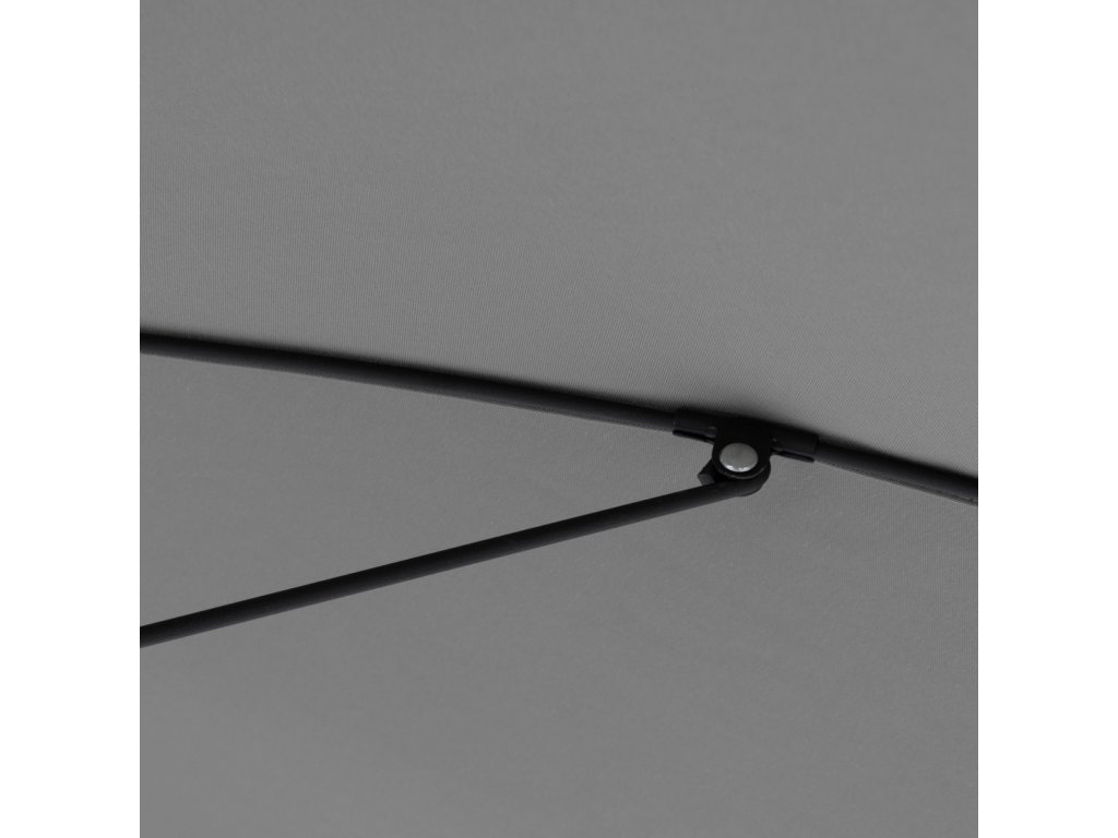 Slunečník má stabilní ocelovou konstrukci v antracitové barvě s ručním otevíráním a naklápěcím kloubem se 3 polohami naklopení. Potah je vyroben ze 100% PET recyklované polyesterové tkaniny a má dobrou UV ochranu 50+. Touto novou kolekcí ""GREEN EDITION"" následujeme trend udržitelnosti materiálů a výrobků.