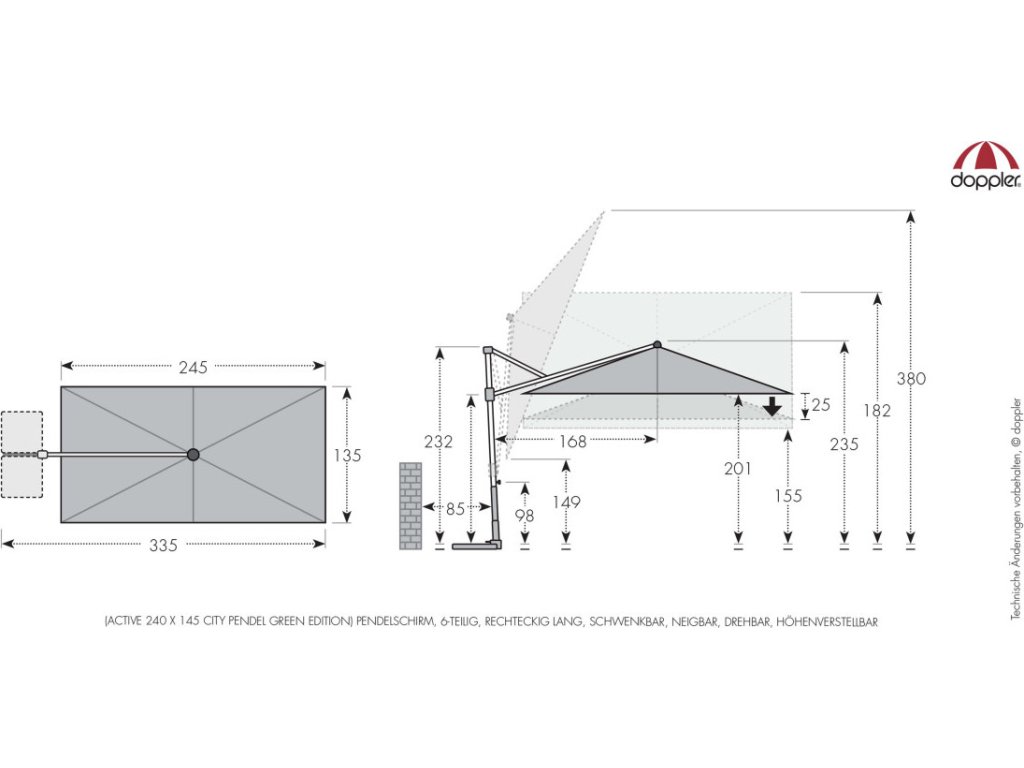 ACTIVE 240 x 135 cm - moderní slunečník s boční nohou