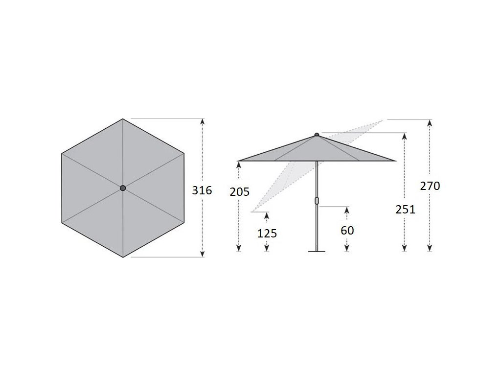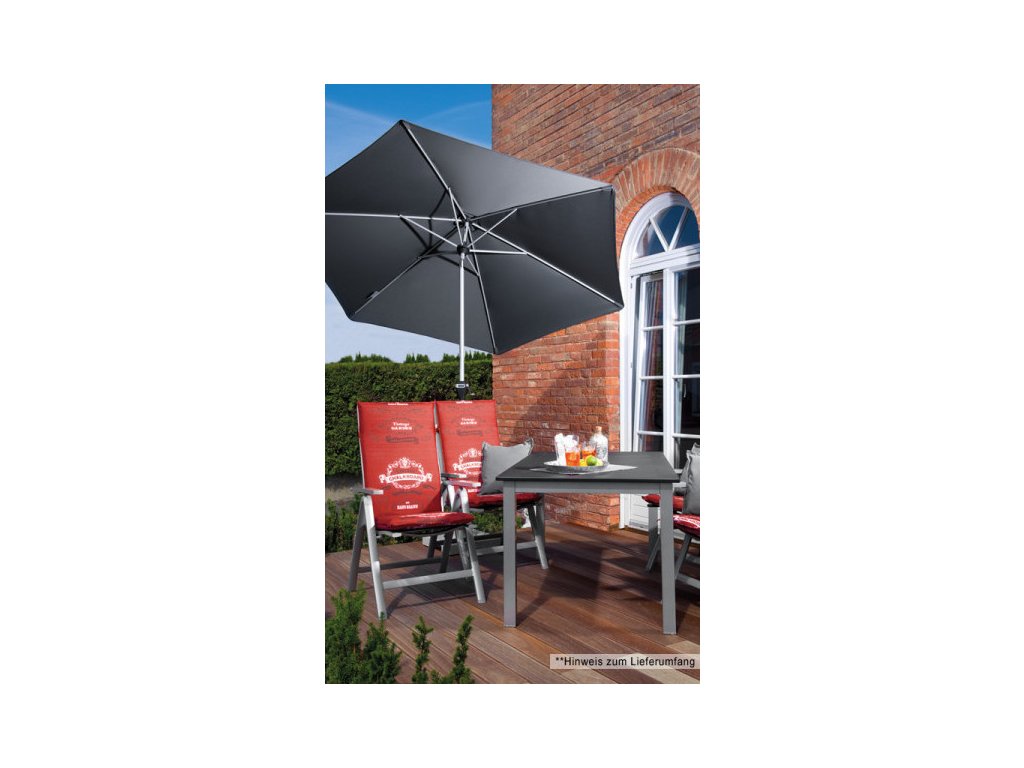 Tento slunečník je ideální na balkón či terasu. Snadné a pohodlné otevření a zavření slunečníku díky kličkovému mechanismu. Slunečník je možné naklopit, proto nabízí dostatečnou ochranu proti slunci. Vodoodpudivý polyesterový potah je snímatelný a je možné ho prát v ruce. Potah je k dispozici v různých barvách a má dobrou ochranu před UV zářením 50+.