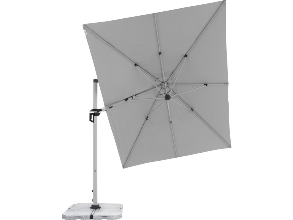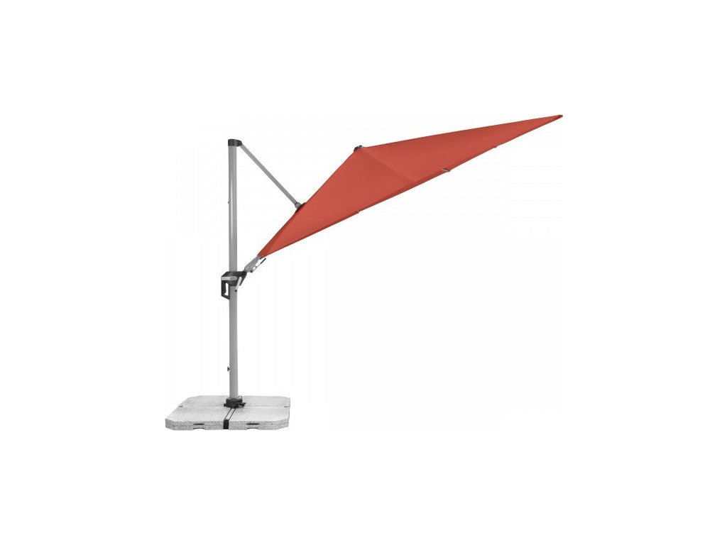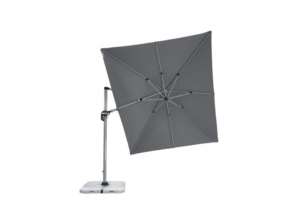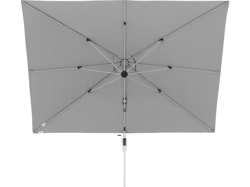 Active 350 x 260 cm je velice všestranný a vysoce kvalitní slunečník s pevným hliníkovým rámem. Obdélníkový tvar střechy je obzvláště vhodný pro zastínění zahradního nábytku. Kromě toho se slunečník dá přizpůsobit pohybu slunce během dne, protože je možné jej otočit o 360°, natočit axiálně na obě strany a může být nastaven pod úhlem dozadu, čímž se optimálně přizpůsobuje pohybu slunce. Potah je vyroben z polyesterové tkaniny odpuzující vodu s dobrou UV ochranou 50+.