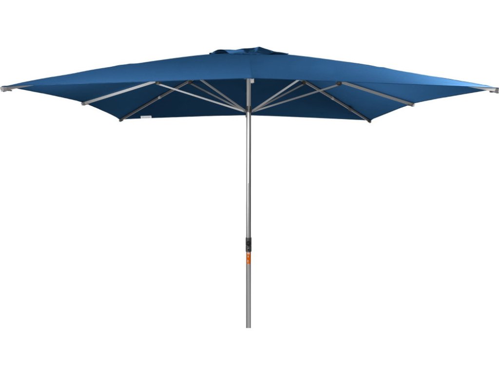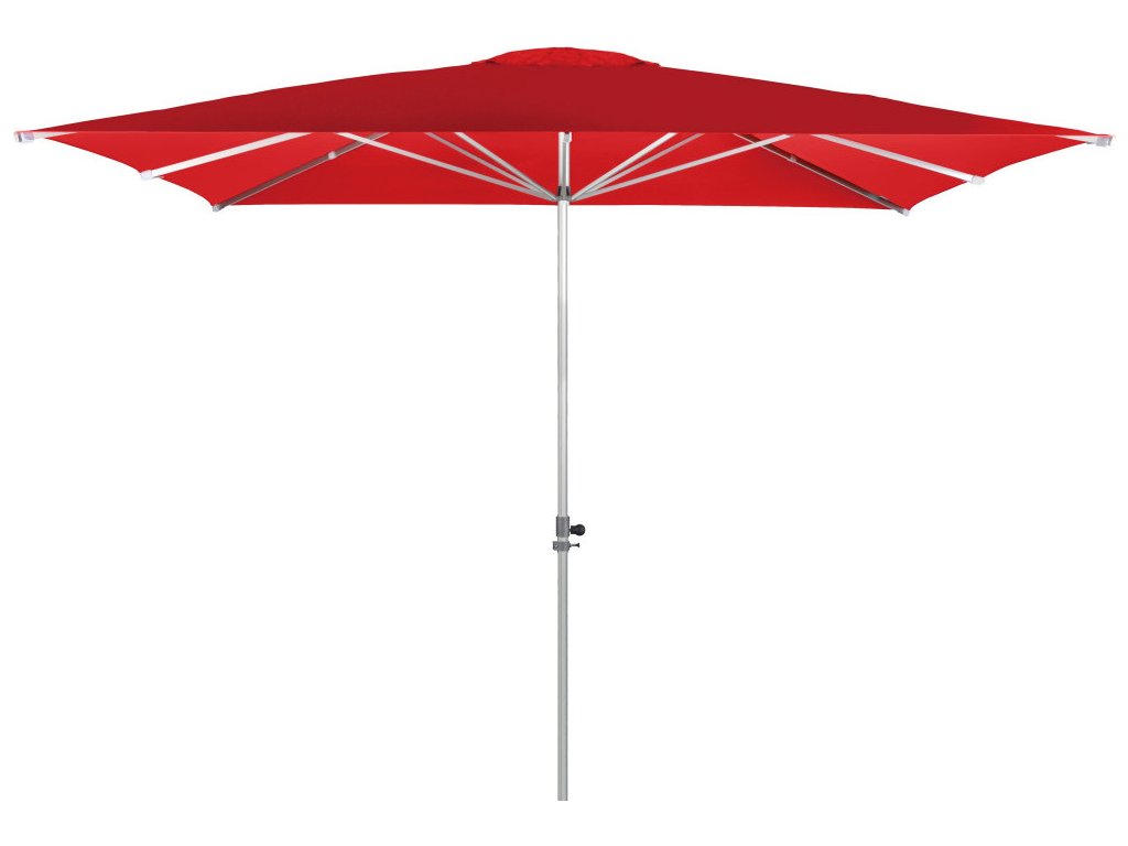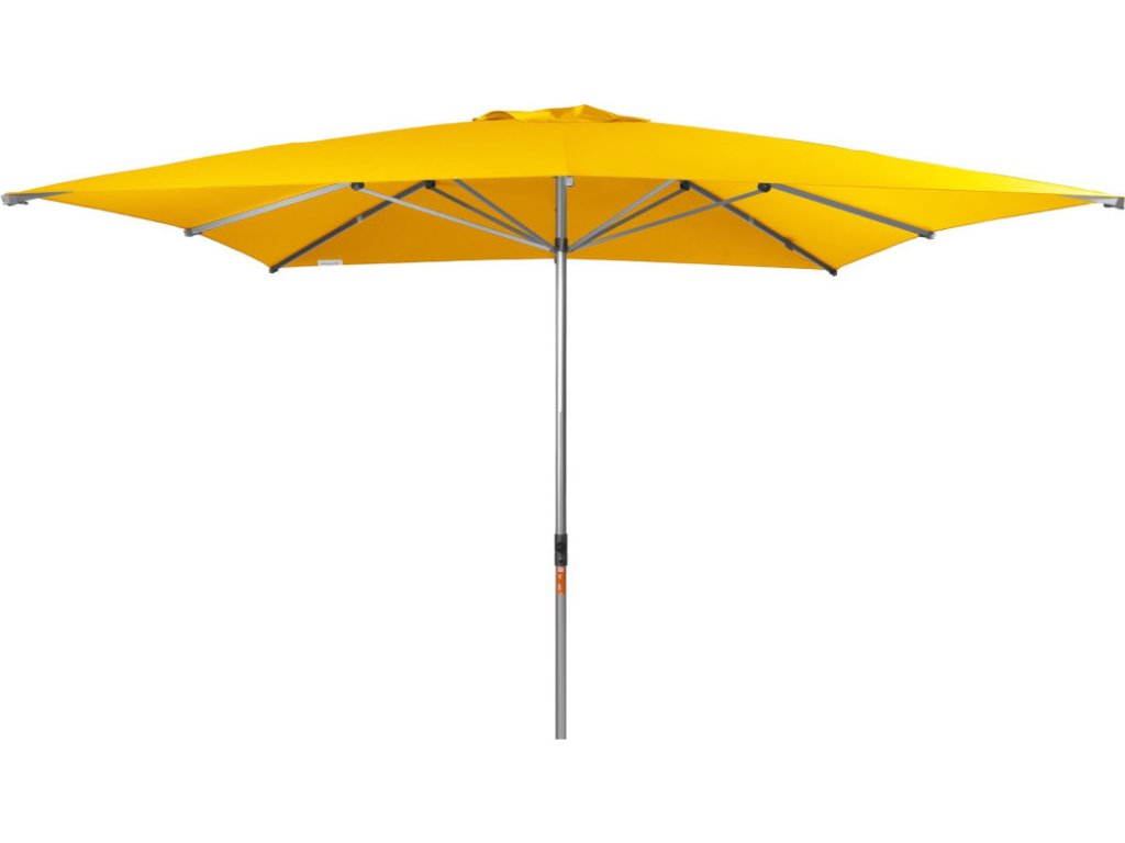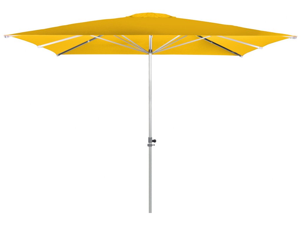Tento slunečník je ideálním společníkem na zahradu či terasu. Profesionální slunečník s pohodlným otvíráním pomocí doppler teleskopického automatického systému. Rám slunečníku je vyroben z hliníkové konstrukce. Lehký a stabilní zahradní slunečník s ""push up"" funkcí. Potah je vyroben s kvalitním nepromokavým polyesterovým potahem, provedení, který je odolný povětrnostním vlivům s dobrou uv ochranou 80+ včetně ochranného obalu. Požadované provedení s volánem či bez volánu, se vzduchovým ventilem či bez ventilu prosím uvádějte do objednávky, (provedení s volánem či ventilem za příplatek). Dodací termín 68 týdnů od objednání. Všeobecné informace:. Velikost slunečníku 3,5 x 3,5 m. Čtvercový tvar. Doporučené zatížení nejméně 90 kg. Podchozí výška: 230 cm. Celková výška otevřeného slunečníku: 3