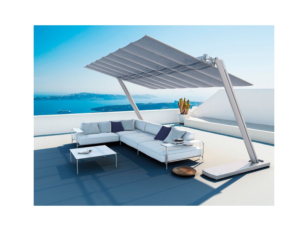 Modulárny systém s moderným, minimalistickým dizajnom, ktorý umožňuje pokryť veľké plochy bez centrálnej prekážky. Šikmé eliptické póly charakterizujú jedinečný dizajn výrobku. K dispozícii v 10 rôznych veľkostiach, ktoré je možné navzájom kombinovať a majú možnosť pokryť veľké plochy. Flex Zen je Ideálny pre hotely, reštaurácie alebo obytné vily, súkromné záhrady. Baldachýn, ktorý sa dá ľahko zavrieť vďaka systému navijaka, sa počas dňa nakláňa pre dodatočný odtieň. Je k dispozícii na objednávku s integrovaným LED osvetlením v póloch. Konštrukcia je vyrobená z hliníka s nerezovým kovaním. Flexy Zen môže byť dodaný ako s voľne stojacimi, tak aj s montážnymi základňami. Všetky výrobky FIM sú navrhnuté a vyrobené v Taliansku s použitím najkvalitnejších materiálov pre vonkajšie použitie, aby sa zaistila dlhá životnosť aj v tých najťažších podmienkach prostredia.Konštrukcia: hliníkový rámMateriál baldachýnu: Akryl Sunbrella 290g/m2. Tento typ látky odoláva extrémnym podmienkam a je vhodný na celoročné použitie v záhradách, terasách, pri bazéne alebo na palubách lodí.UV ochrana: UPF 50+Rozmery: 300 x 488 cmCelkové rozmery: 571 x 300 x 249cm Š/H/VHmotnosť: 770 kg