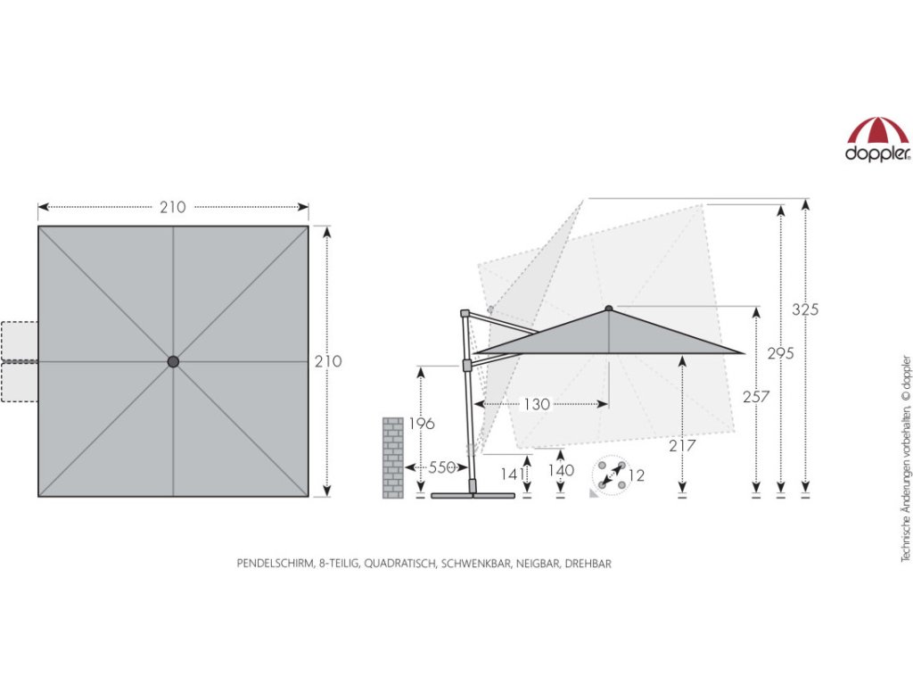 myZone 210 x 210 cm - výkyvný zahradní slunečník s boční tyčí
