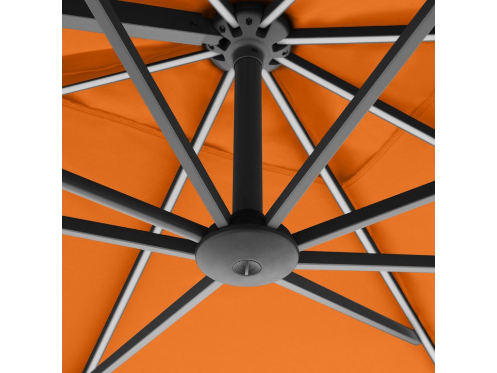 Objevte řadu slunečníků myZone a proměňte své oblíbené místo na zahradě, na terase nebo na balkoně ve svou osobní zónu pro dobrý pocit. S moderním designem, oranžově zvýrazněnými stylovými prvky a prvotřídním UV ochranným faktorem 60+ spojuje řada estetiku s bezpečnou ochranou před nebezpečným UV zářením. Antracitově práškově lakovaný hliníkový rám dodává slunečníku lehkost a robustnost a zajišťuje dlouhou životnost a odolnost vůči povětrnostním vlivům.