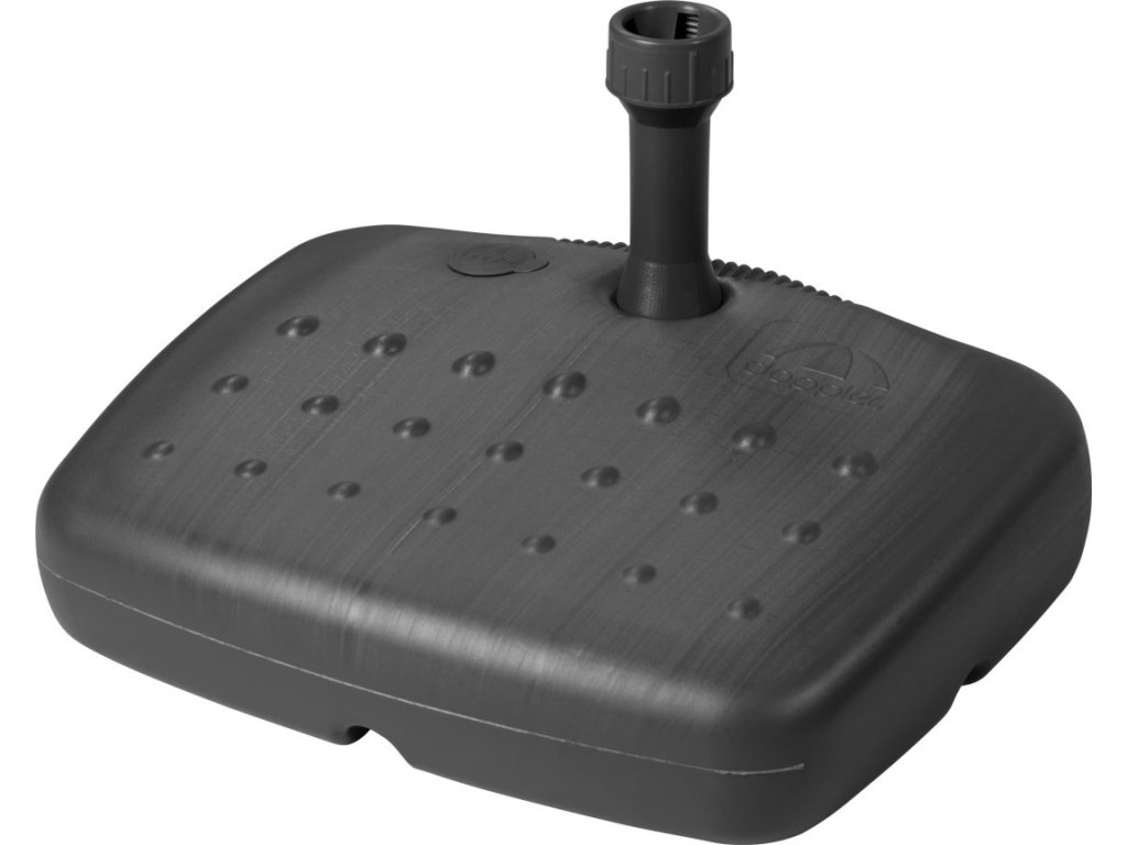 Plastový plnitelný stojan vhodný pro slunečníky do 180 cm. 17litrová náplň PVC je ideální pro menší slunečníky na balkoně nebo na střešní terase. Díky jeho malé velikosti lze se stojanem dobře manipulovat, i když je naplněný. Pro optimální stabilitu doporučujeme plnit vodou.