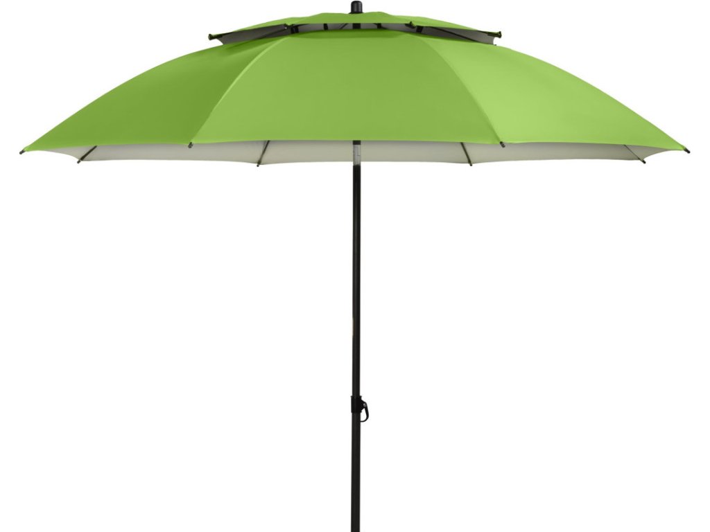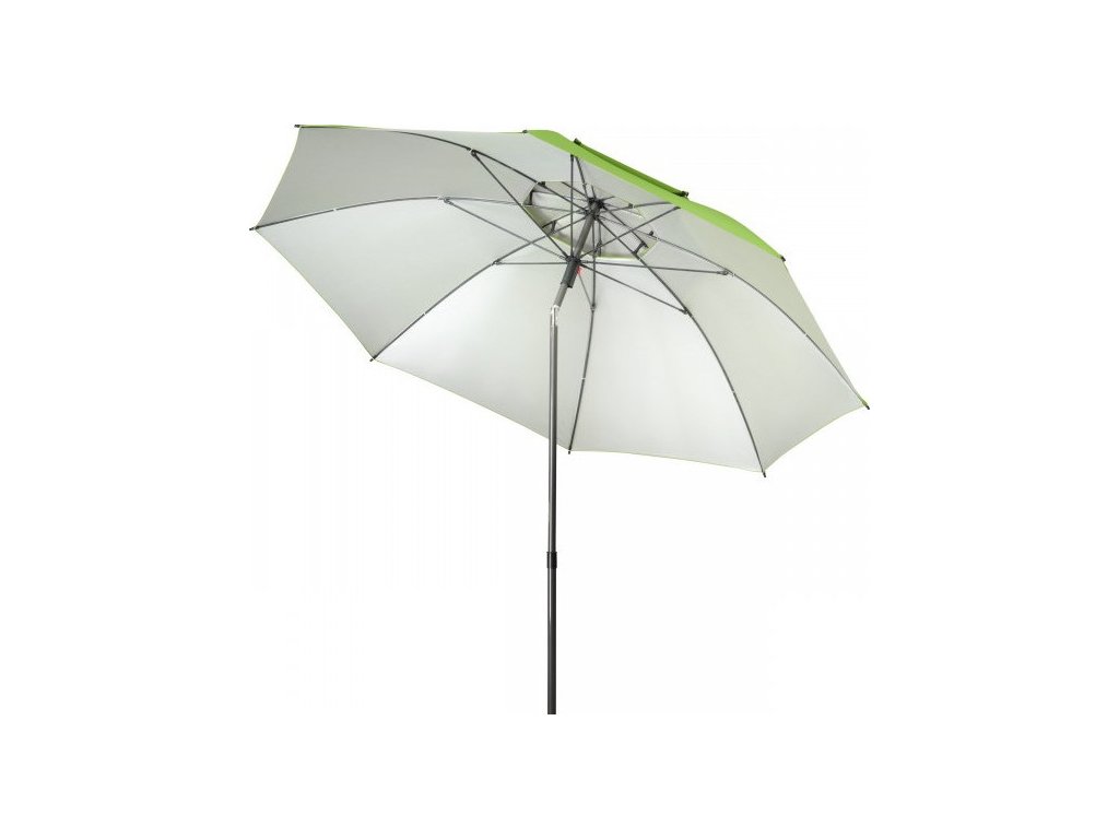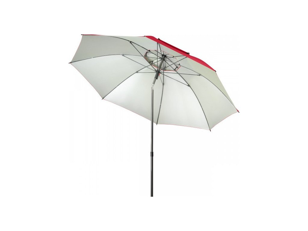 Tento robustní plážový slunečník je ideálním společníkem na pláž, k rybníku nebo bazénu. Rám slunečníku je vyroben z oceli ošetřen práškovou barvou a je výškově nastavitelný. Vzduchový ventil, sklolaminátové výztuhy a praktická přenosná taška dokonale dotváří tento výrobek. Potah je vyroben z polyesterové tkaniny odolné povětrnostním vlivům s dobrou UV ochranou 50+.