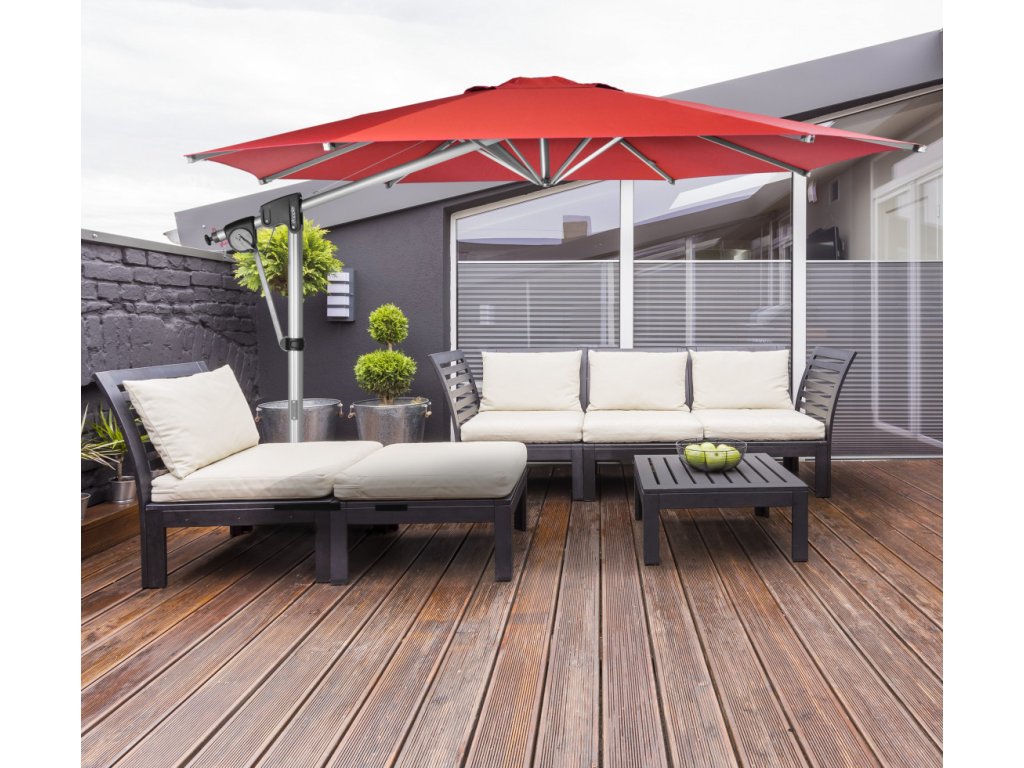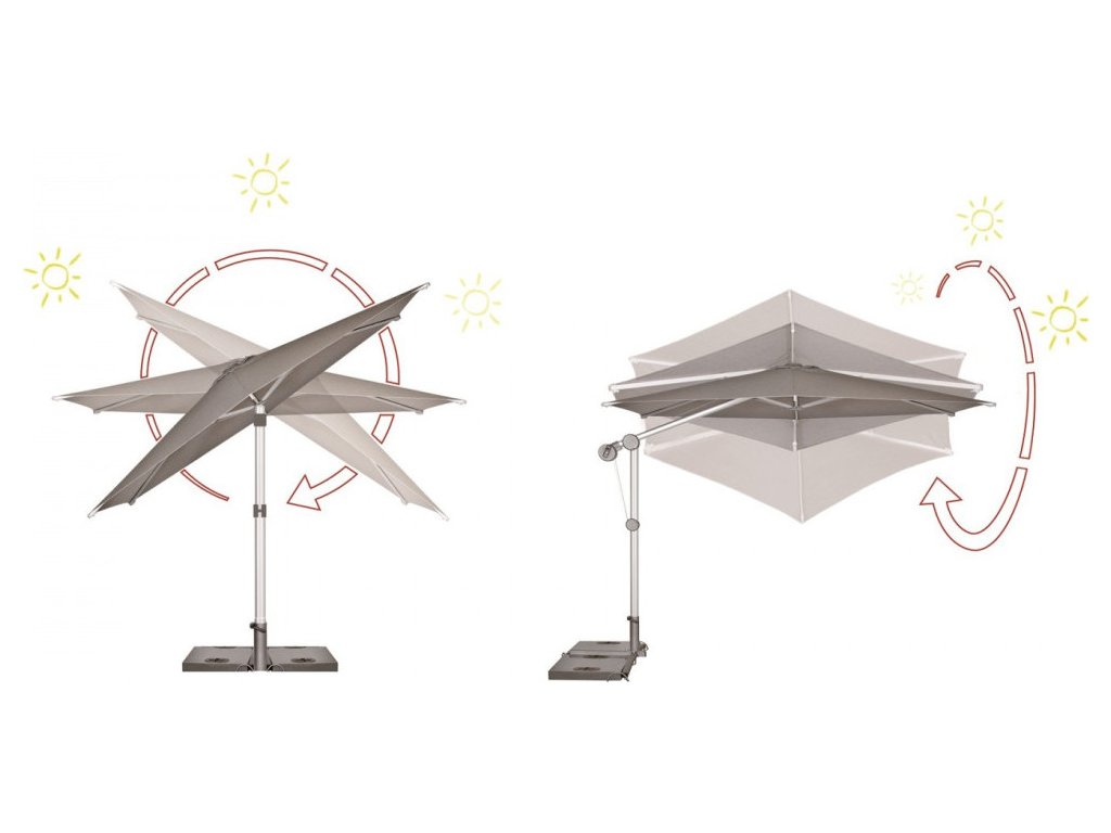 Protect 400P je multifunkční slunečník s boční nohou, který spolehlivě zastíní Vaše zahradní posezení. Slunečník má snadné ovládání kličkou, je otočný o 360 ° a oboustranně naklopitelný, takže jej lze dokonale přizpůsobit pohybu slunce. Konstrukce je vyrobená z kvalitního hliníku. Dodáváme včetně ochranného obalu.