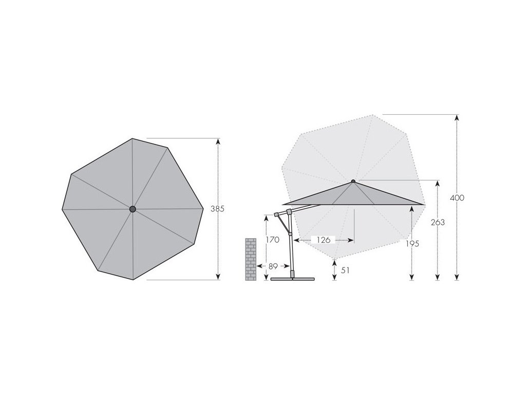 | Typ slunečníku: | S boční tyčí |