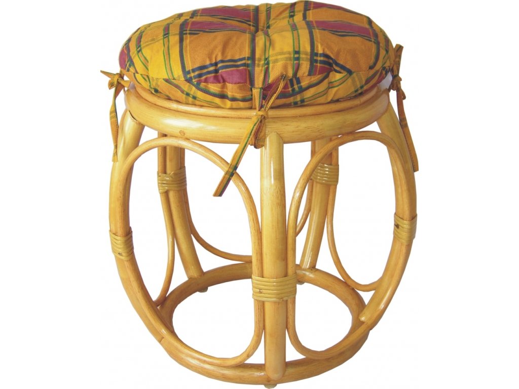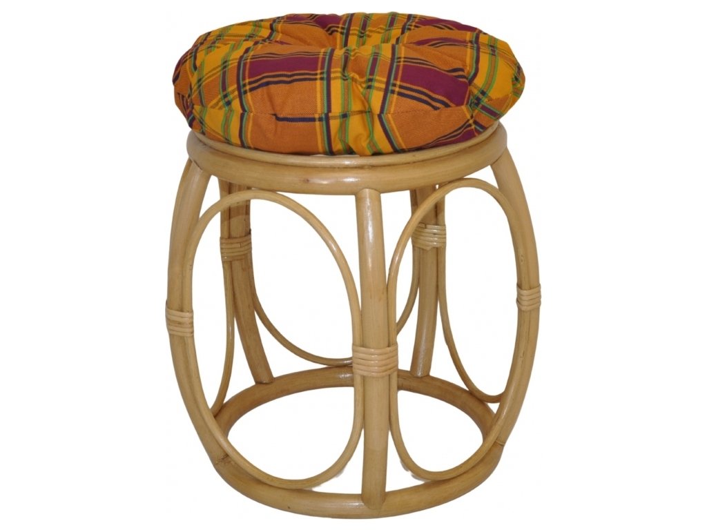 Ratanový nábytek - ratanová taburetka s polstrem | Průměr 35 cm, výška 38 cm.