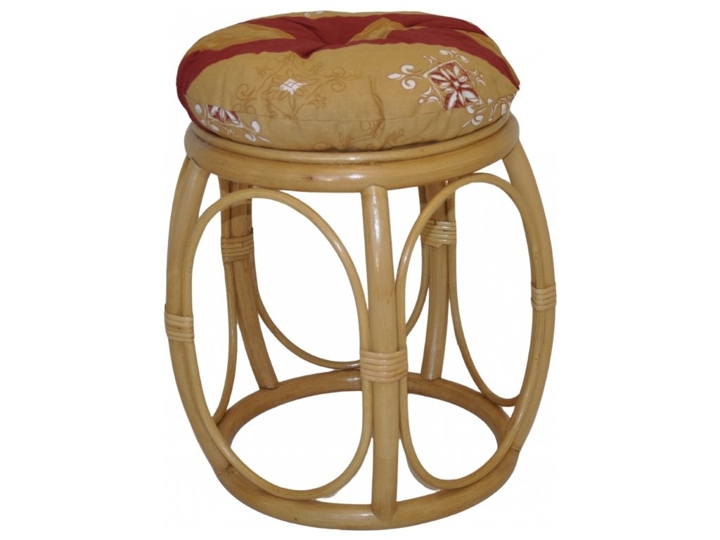 Ratanový nábytek - ratanová taburetka s polstrem | Průměr 35 cm, výška 38 cm.