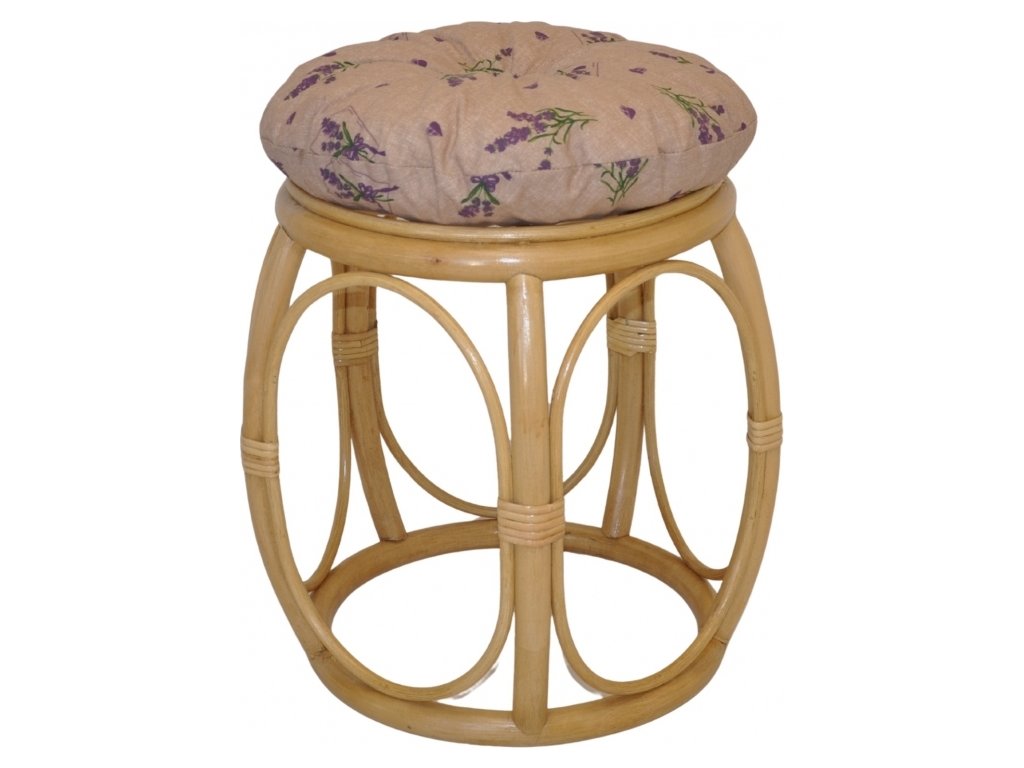 Ratanová taburetka široká medová s polstrem motiv levandule