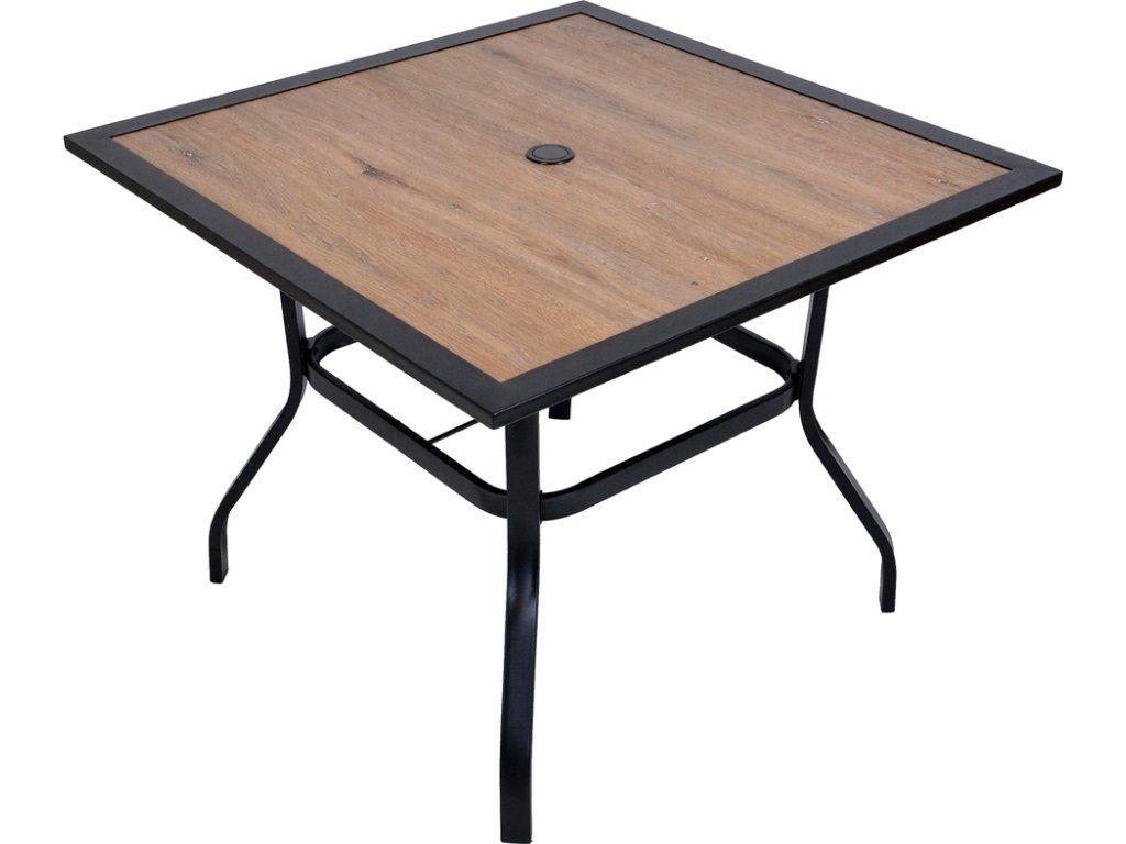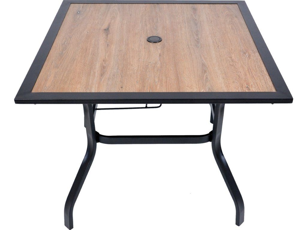 Odolný kovový zahradní stůl. Ocelová konstrukce stolu nabízí dostatečnou stabilitu. 5 mm silná stolová deska z polywoodu v dekoru dřeva poskytuje dostatečný, rovný povrch ke stolování.