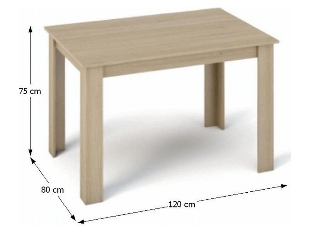 Jídelní stůl KRAZ Materiál: DTD laminovaná / ABS hrany Provedení: dub sonoma Rozměry (ŠxHxV): 120x80x75 cm Tloušťka materiálu: 16 mm Vhodný pro 4 osoby Dodávané v demontu