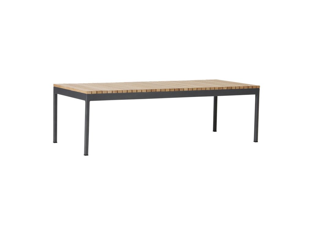 Elegantný záhradný, konferenčný stôl Zalongo, ktorý kombinuje vysoko kvalitný teak s hliníkom v antracitovej farbe. Rovné teakové rebrá umocňujú dojem kvality a zároveň elegancie. Materiál: hliníkový rám a prémiové teakové drevoFarba rámu: antracitRozmery:šírka: 150 cm hĺbka: 60 cm výška: 45 cm Hmotnosť: 19 kg